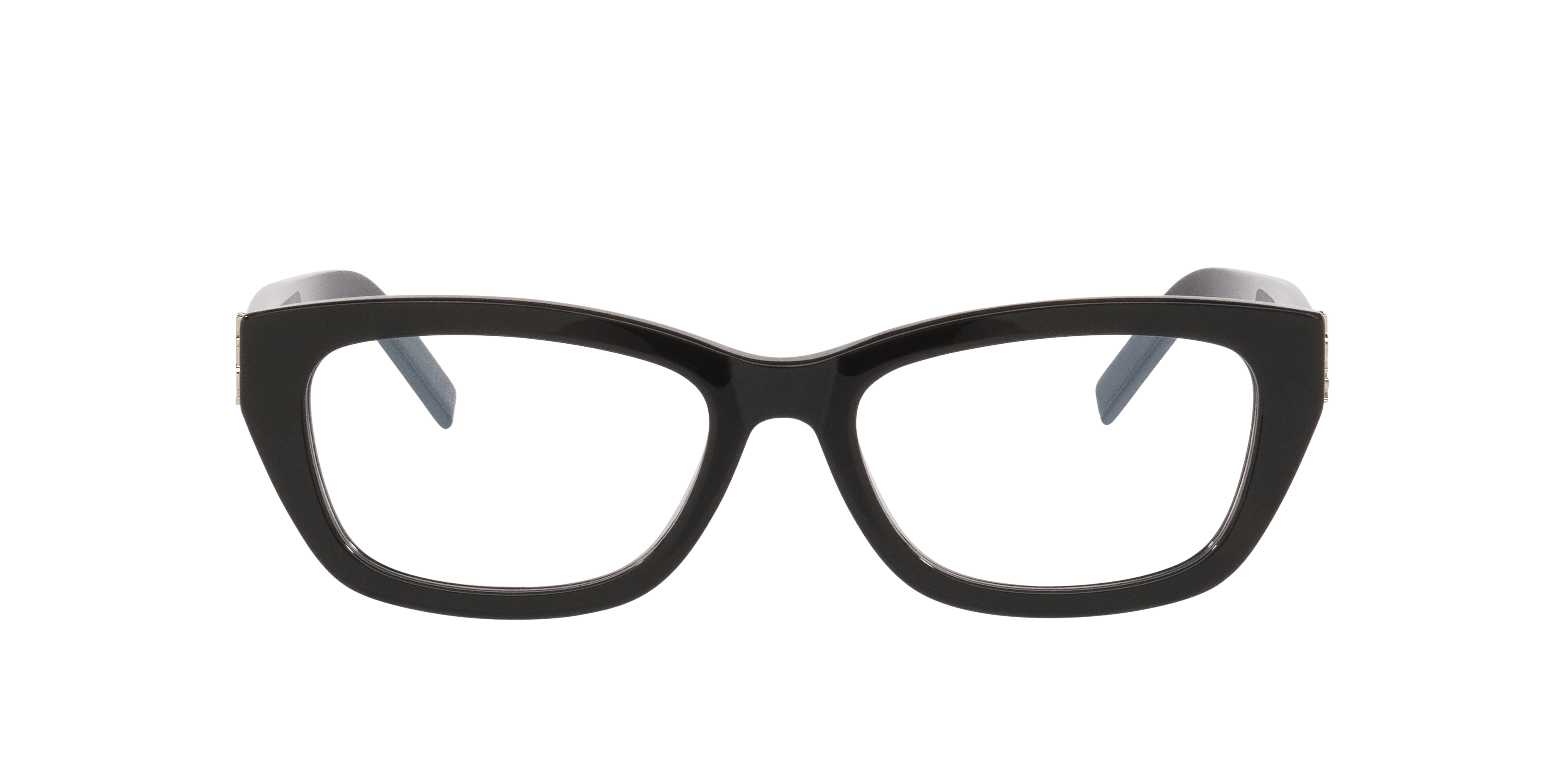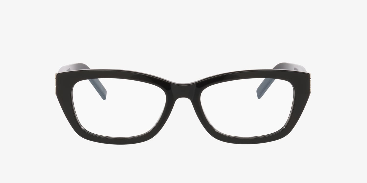 Elevate your everyday look with Saint Laurent's SLM153OPT optical glasses. The sophisticated cat eye eyeglasses, crafted from durable plastic, exude timeless elegance. Finished with a sleek black front and clear lenses, these Saint Laurent glasses pair luxurious design with impeccable craftsmanship. Acetate temples enhance comfort and style in this effortlessly chic accessory.