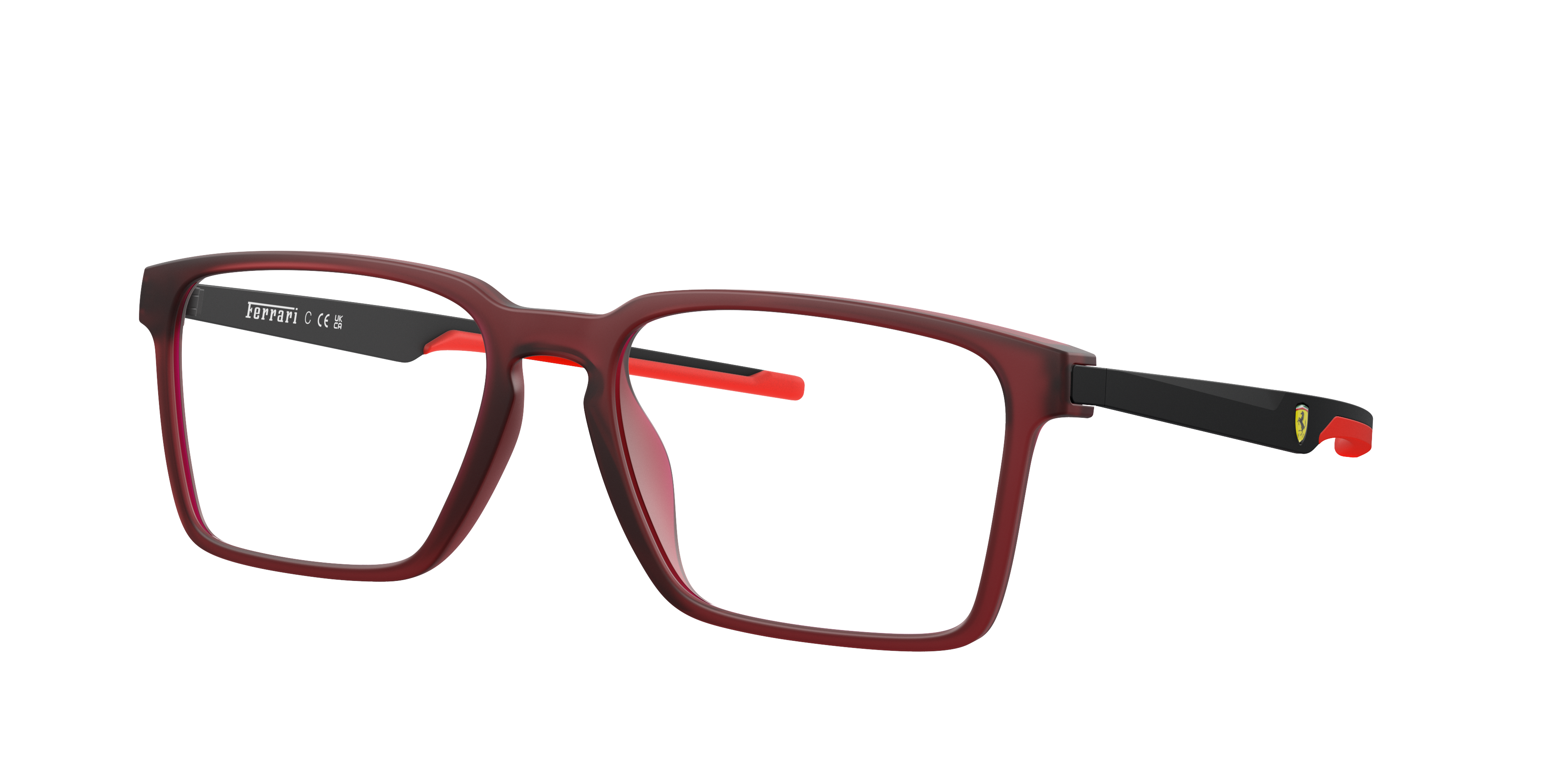 Enhance your style and enhance your performance with Scuderia Ferrari FZ8005U rectangular optical glasses. The sleek rectangular design, along with a transparent red matte rectangle frame, gives these shades a modern and streamlined appearance. The frame shape and color also add a vibrant touch that is bound to catch attention. These glasses are not only fashionable but also convenient as they allow for effortless customization. Available with prescription lenses.