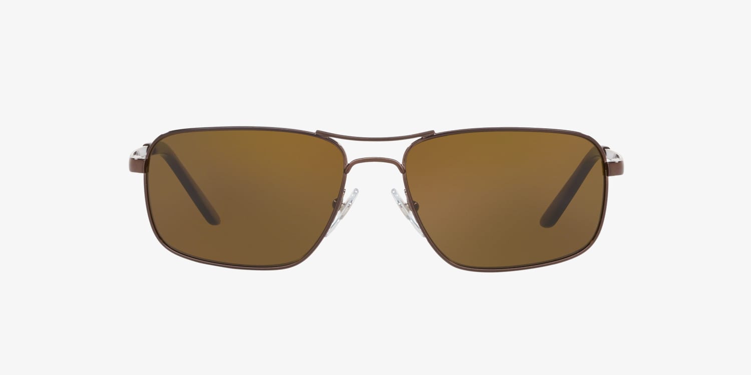 Experience the exquisite balance between style and performance with Sferoflex SF5005S, a pair of shades that exudes sophistication. The rectangle shape and polished dark brown metal frame offer a timeless appeal that complements any outfit. The solid color lens treatment in brown adds a touch of elegance to your look. These glasses are not just stylish, but also practical. Available with prescription lenses.
