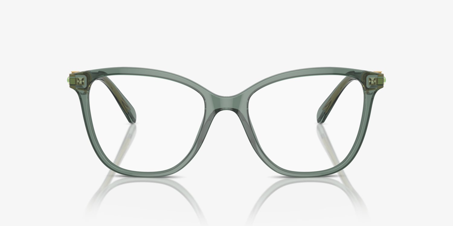 Swarovski SK2020 Optical glasses embody the perfect balance between style and functionality. The square shape adds a modern twist to the traditional design, while the transparent green acetate frame with shiny finish exudes a youthful vibe. These glasses are not just a fashion statement but also a practical accessory. The strass detailing adds a touch of glamour, making these acetate frames an ideal choice for those who like to stand out from the crowd. With these Optical, you'll always look your best.