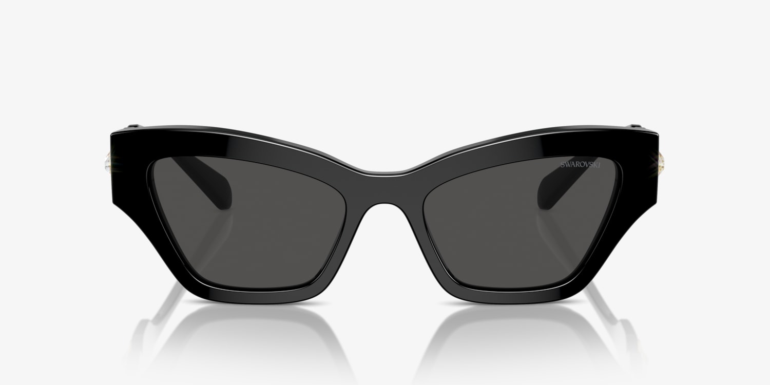 Experience the interplay of geometric shapes and optical perfection in Swarovski SK6021. These irregular-shaped glasses feature a polished black acetate frame, adorned with sparkling strass for added glamour. The dark grey solid color lenses provide excellent protection from harmful UV rays while maintaining a sleek look. Discover the beauty and precision that only Swarovski can offer. Available with prescription lenses.