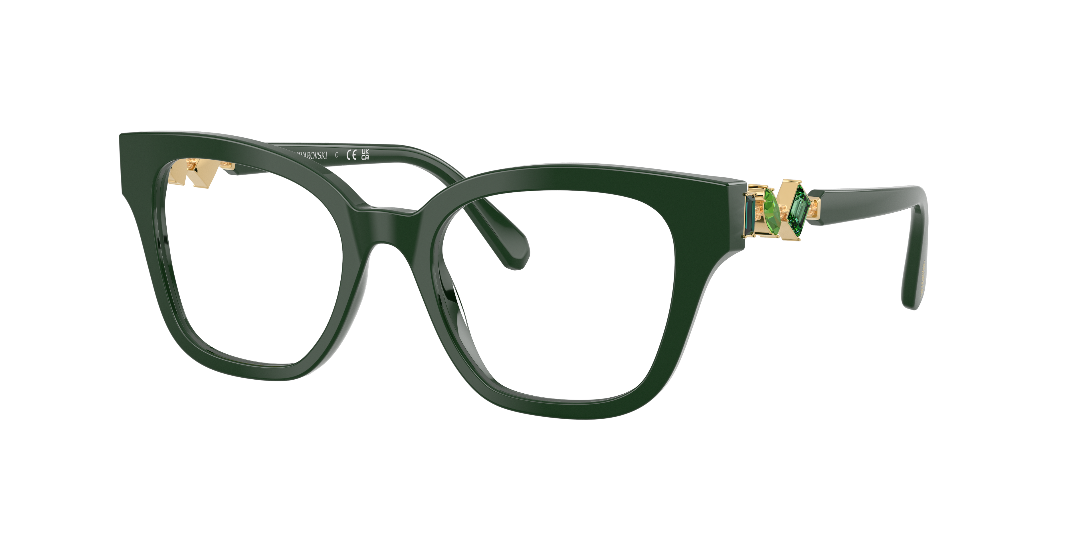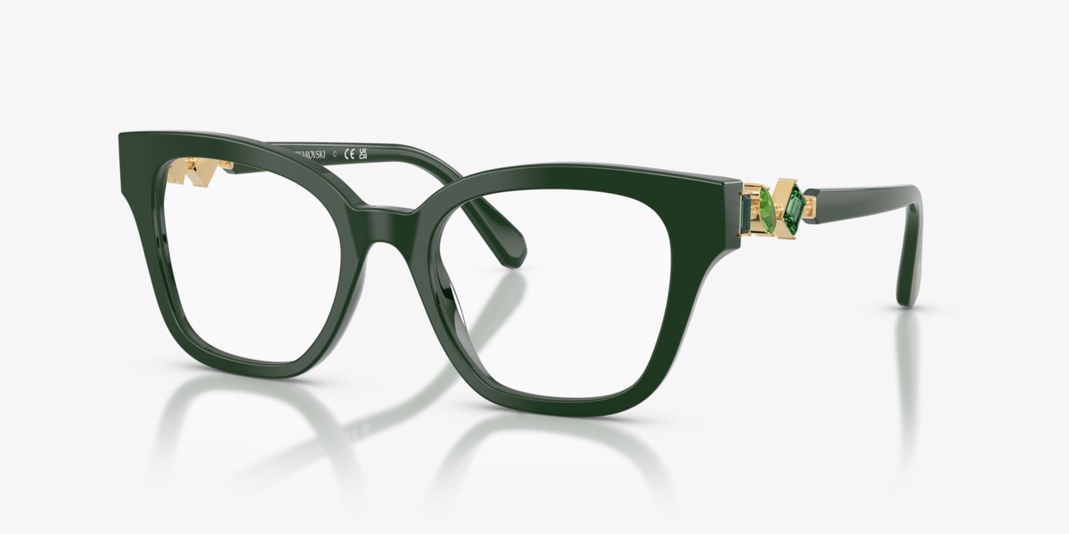 Experience the ultimate synergy of style and performance with Swarovski SK2048. Crafted from acetate, these square-shaped glasses are polished to perfection, offering a sleek and sophisticated look. The dark green frame color is adorned with strass, adding a touch of glamour to your everyday wear. These shades are not only stylish but also functional. Available with prescription lenses.