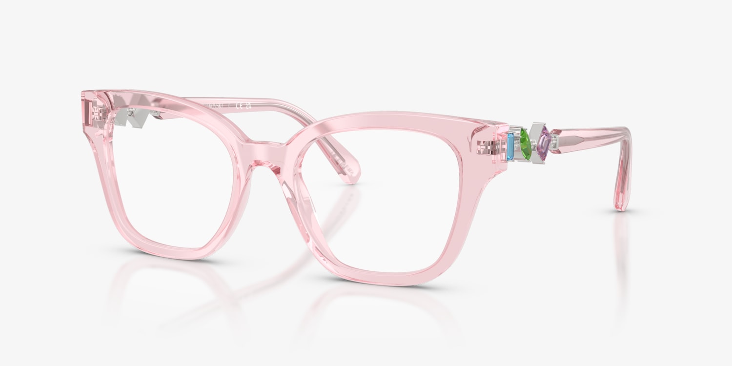 These Swarovski SK2048 opticals provide a perfect blend of style and functionality. The square shape, crafted from high-quality acetate, offers a modern and sophisticated look. The polished transparent pink frame color adds a touch of glamour, while the strass detailing on the temples ensures a dazzling finish. These glasses are not only stylish but also versatile. Embrace your unique sense of fashion with these stunning frames. Available with prescription lenses.