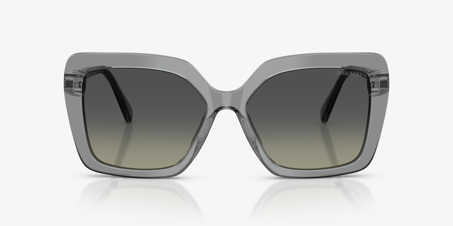 Elevate your fashion quotient with Swarovski SK6049. The butterfly shape and transparent grey acetate frame, in a polished finish, are a perfect blend of style and comfort. These sunglasses feature gradient grey lenses that add a touch of sophistication to your look. Strass detailing on the frames adds an element of luxury. With these shades, you'll surely turn heads wherever you go.