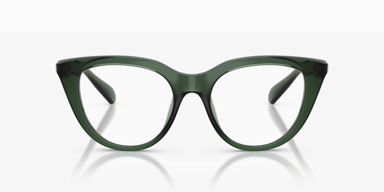 Enhance your visual appeal with Swarovski SK2052 Optical. These glasses feature a polished, transparent green cat-eye frame that adds a touch of glamour to any look. The strass detail on the frames further elevates their style quotient. These shades are not just stylish but also practical, making them a must-have accessory for every fashion-forward individual.