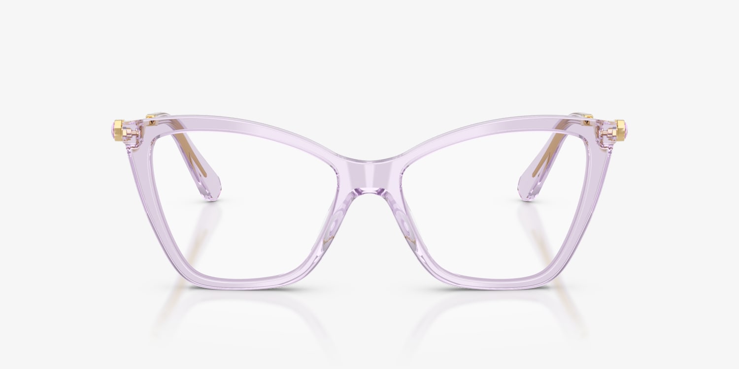 Elevate your fashion while optimizing optical utility with Swarovski SK2051. These cat-eye glasses feature a polished, transparent lilac frame made of acetate material, adding a touch of elegance to your look. The strass detailing on the temples adds a glamorous touch. These frames are not just stylish but also versatile and practical.
