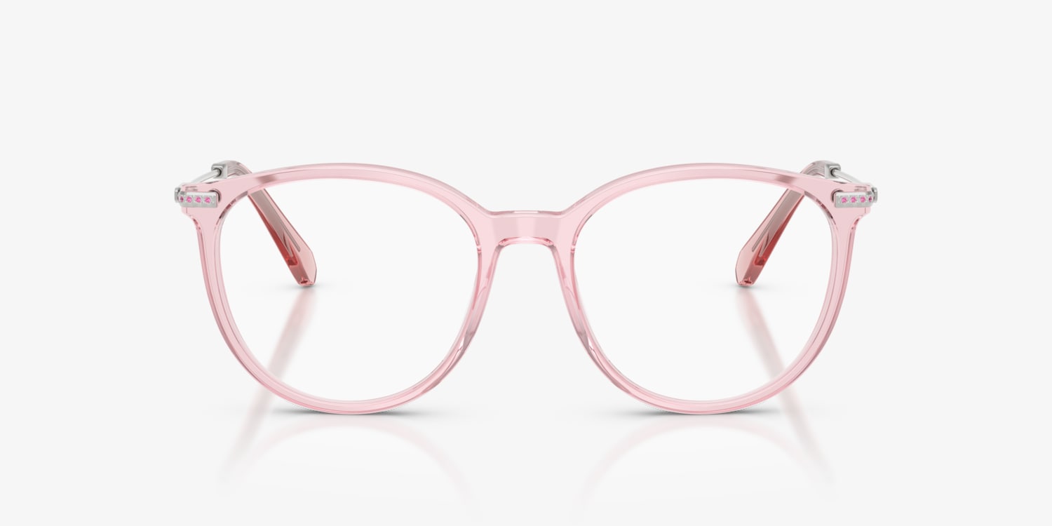 Swarovski SK2009 Optical are a perfect blend of style and functionality. The transparent pink acetate frame, in a phantos shape, is polished to perfection. Adorned with dazzling strass on the frame and temples, these glasses exude sophistication and elegance. These shades are not only stylish but also versatile. Embrace your unique sense of style with these stunning Optical.