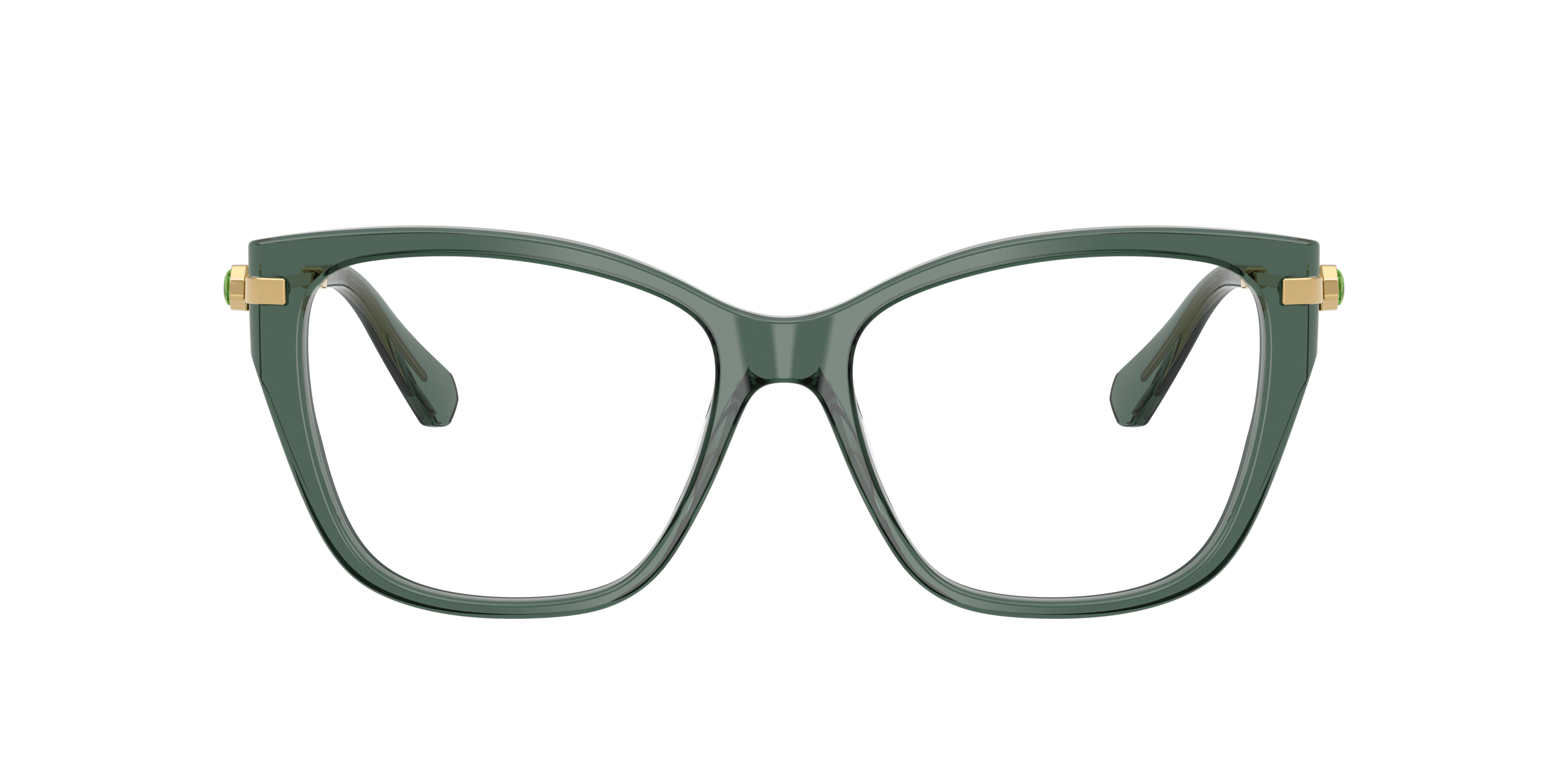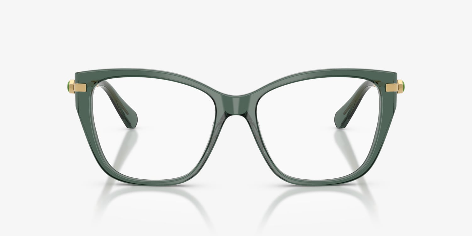 Elevate your everyday look with the Swarovski SK2060 opticals. These cat-eye frames feature bold green plastic fronts paired with slim, polished metal temples. Strass crystal embellishments and octagonal engravings add a touch of sophistication, while acetate tips ensure comfort. Perfect for those seeking Swarovski eyeglasses with a striking design.