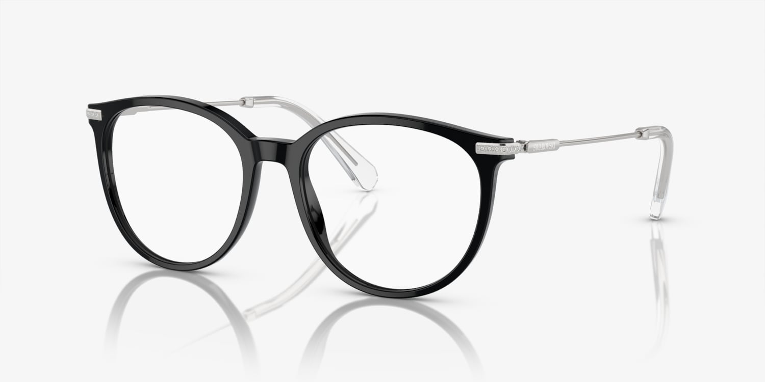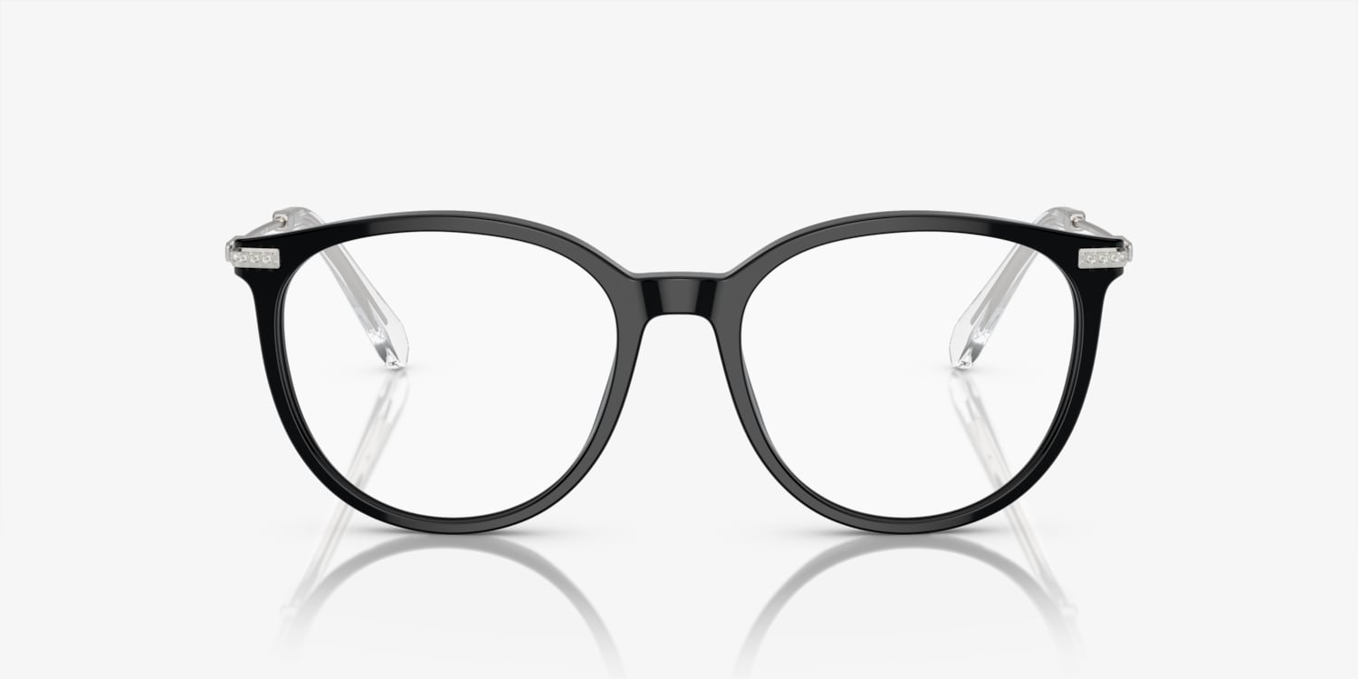 Elevate your fashion and vision goals with Swarovski SK2009. The polished black acetate frame, combined with strass accents, creates a stunning yet sophisticated look. The phantos shape adds a touch of vintage charm, while the modern design ensures a comfortable fit. These eyeglasses are not only stylish but also practical. Available with prescription lenses.