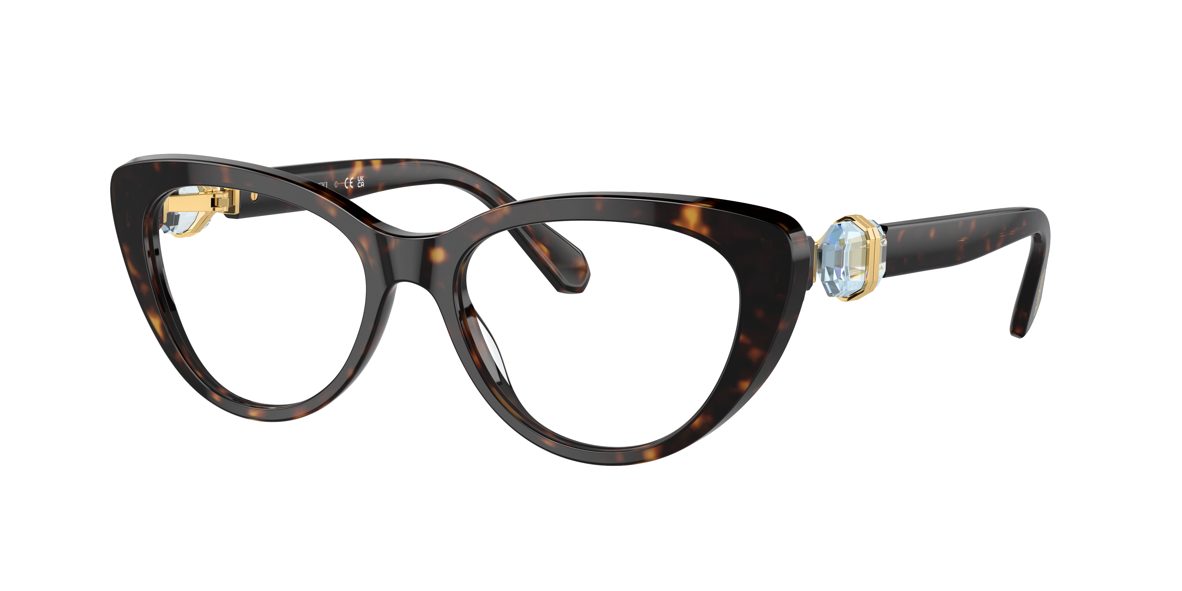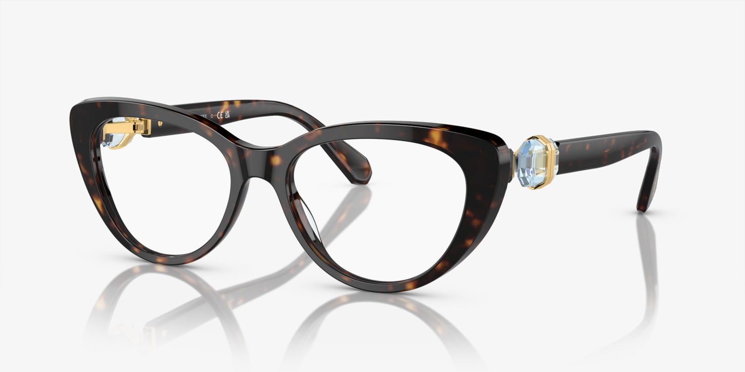 Elevate your fashion while optimizing utility with Swarovski SK2005 eyeglasses. The cat eye shape and polished dark havana frame color offer a vintage-chic appeal, while the strass detailing adds a touch of glamour. Crafted from durable acetate, these frames are designed to last. Embrace your unique style with these stylish shades from Swarovski. Available with prescription lenses.