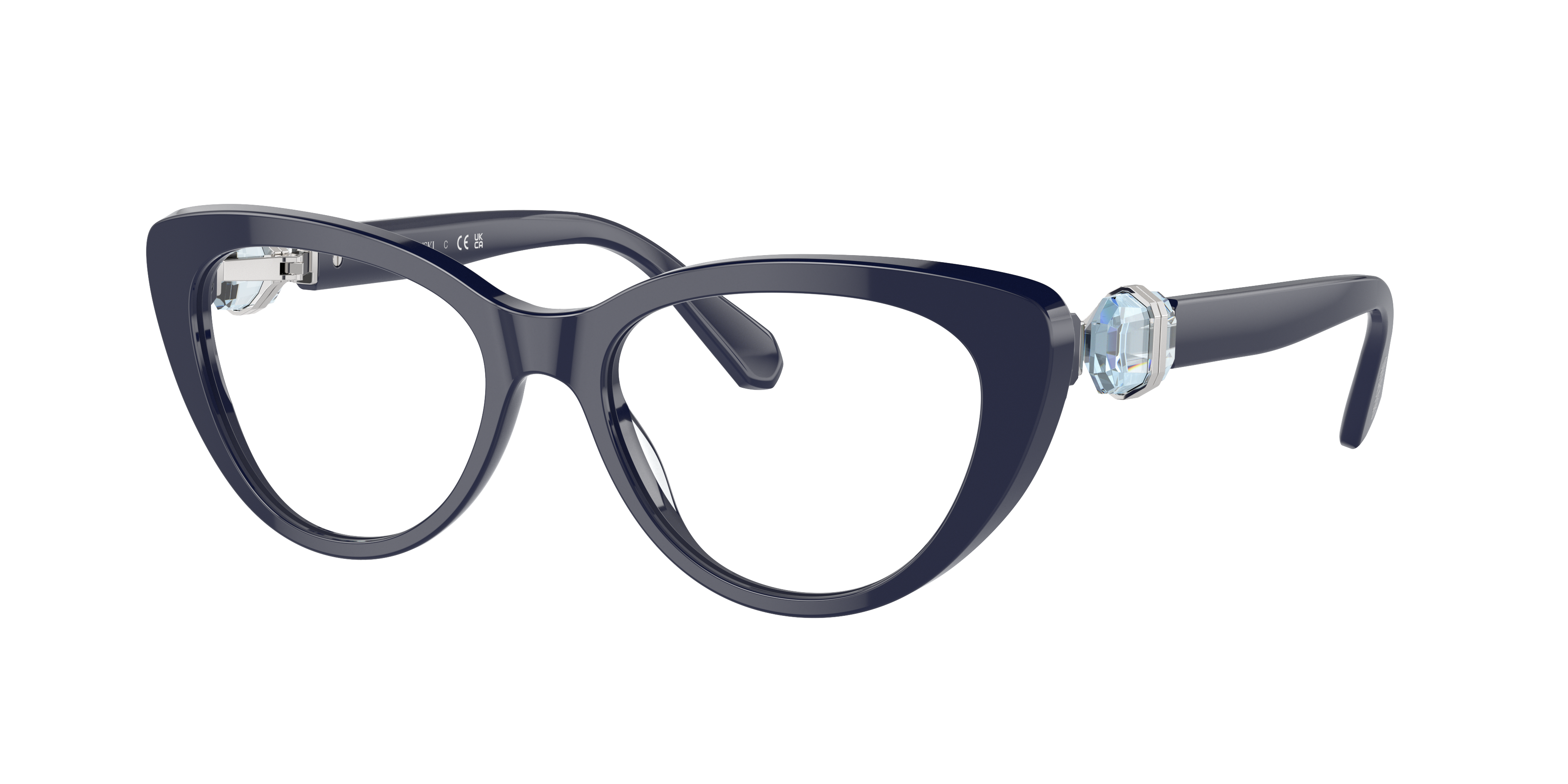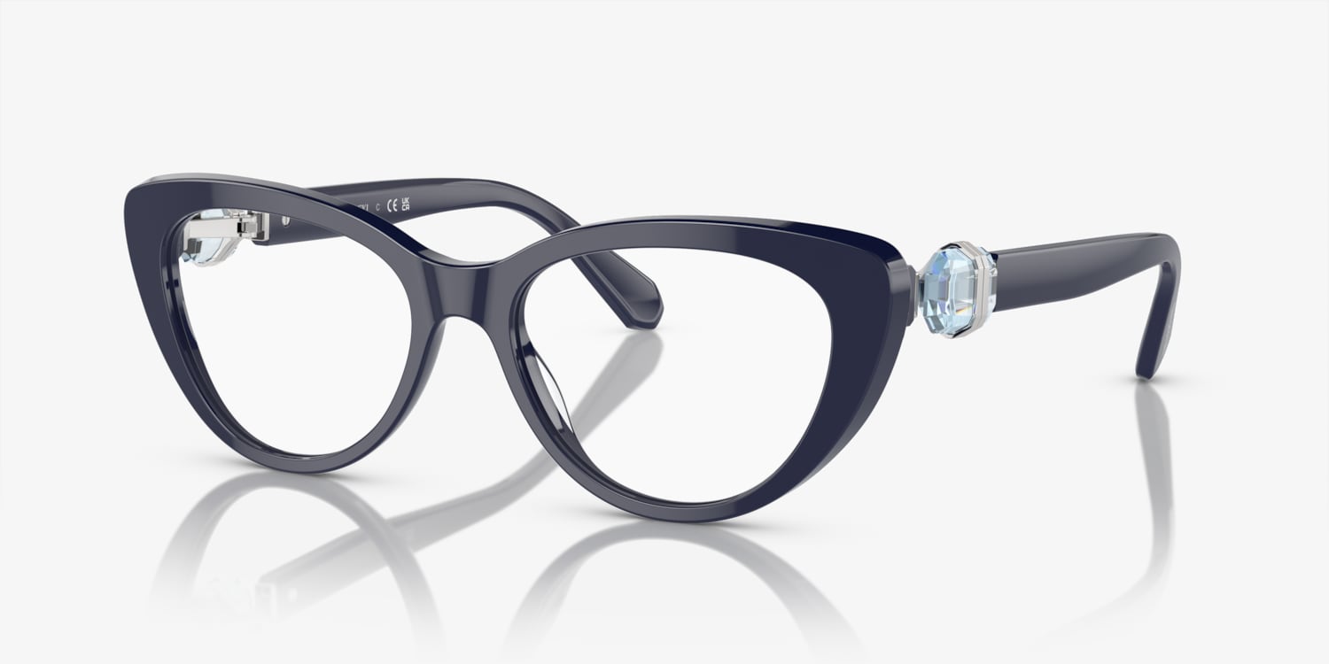Elevate your style with Swarovski SK2005 eyeglasses. The cat eye shape and polished dark blue frame color give these glasses a chic and glamorous look. Crafted from acetate, the frame is durable and lightweight, ensuring all-day comfort. Strass detailing adds a touch of sparkle to these eyeglasses, making them a perfect accessory for fashion-forward individuals. Available with prescription lenses.