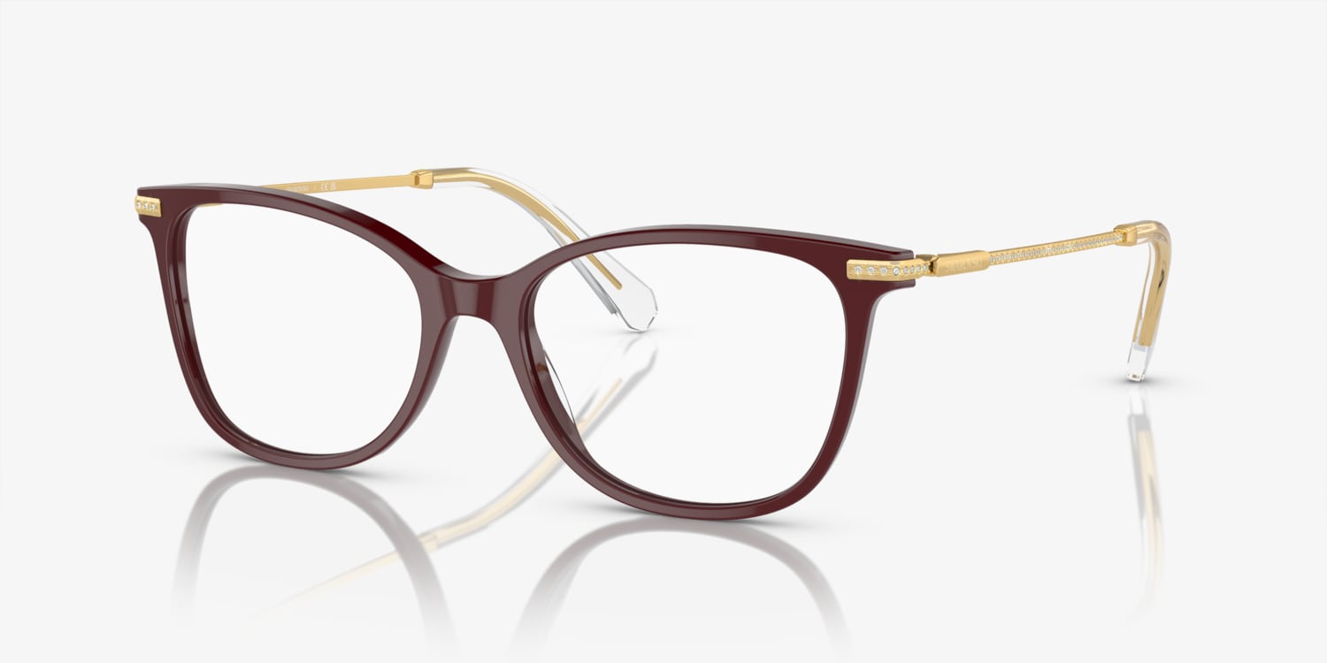 Elevate your style quotient with Swarovski SK2010 eyeglasses. The square shape and polished finish give these glasses a timeless appeal, while the bold color of burgundy adds a touch of sophistication. Embellished with strass, these eyeglasses are not only functional but also stylish. Crafted from high-quality acetate, this frame is designed to last. Embrace the elegance of Swarovski in every aspect of your life. Available with prescription lenses.