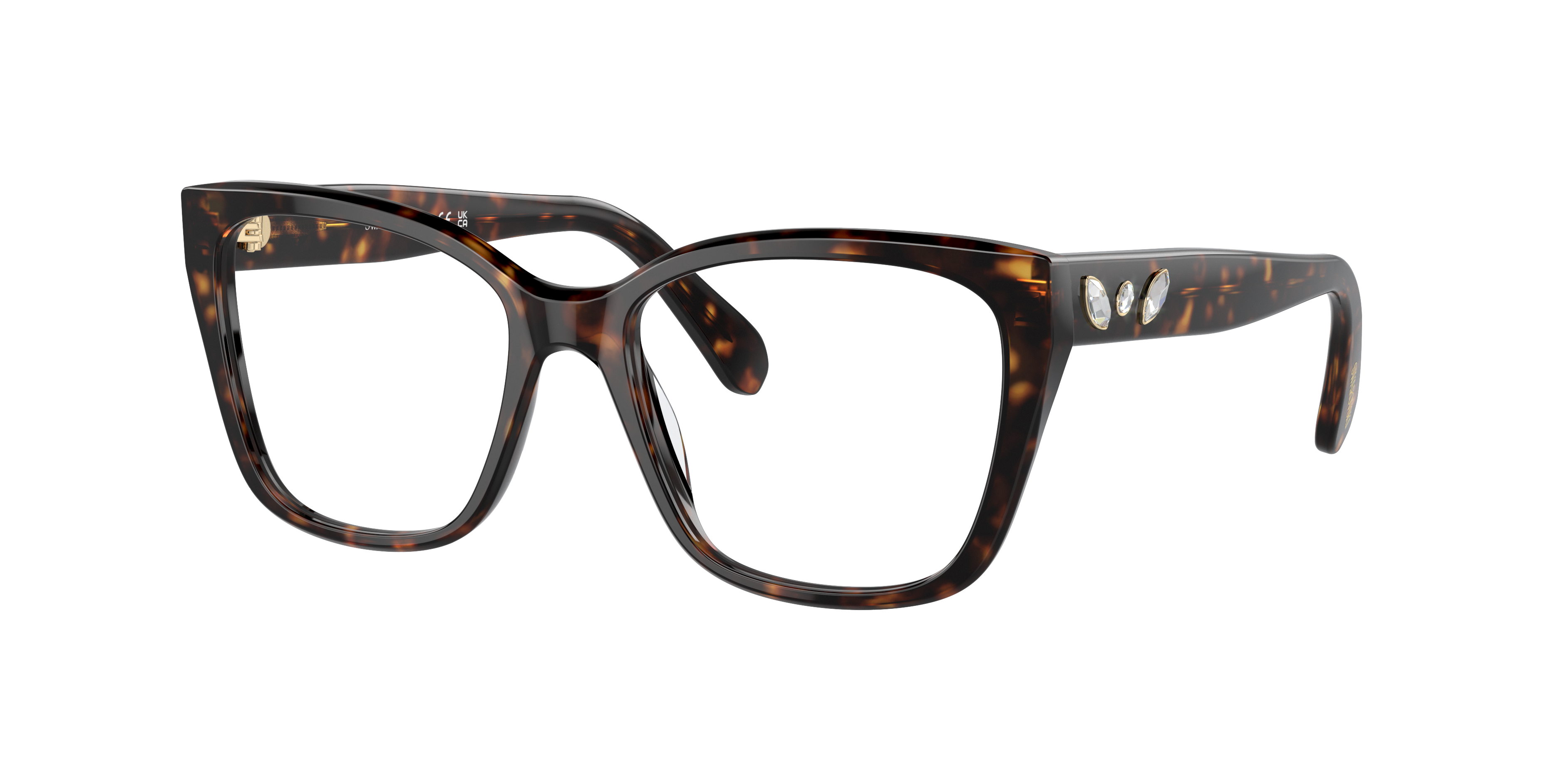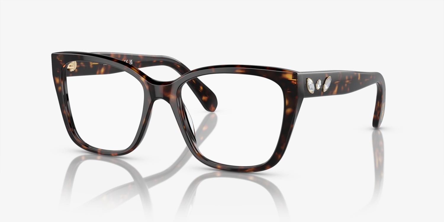 Elevate your eyewear to a new level of sophistication with Swarovski SK2008. The irregular shape and polished havana frame color give these glasses a unique and stylish look. Crafted from high-quality acetate, the frame is durable and comfortable to wear. Strass details add a touch of glamour, making these eyeglasses a perfect choice for fashion enthusiasts.