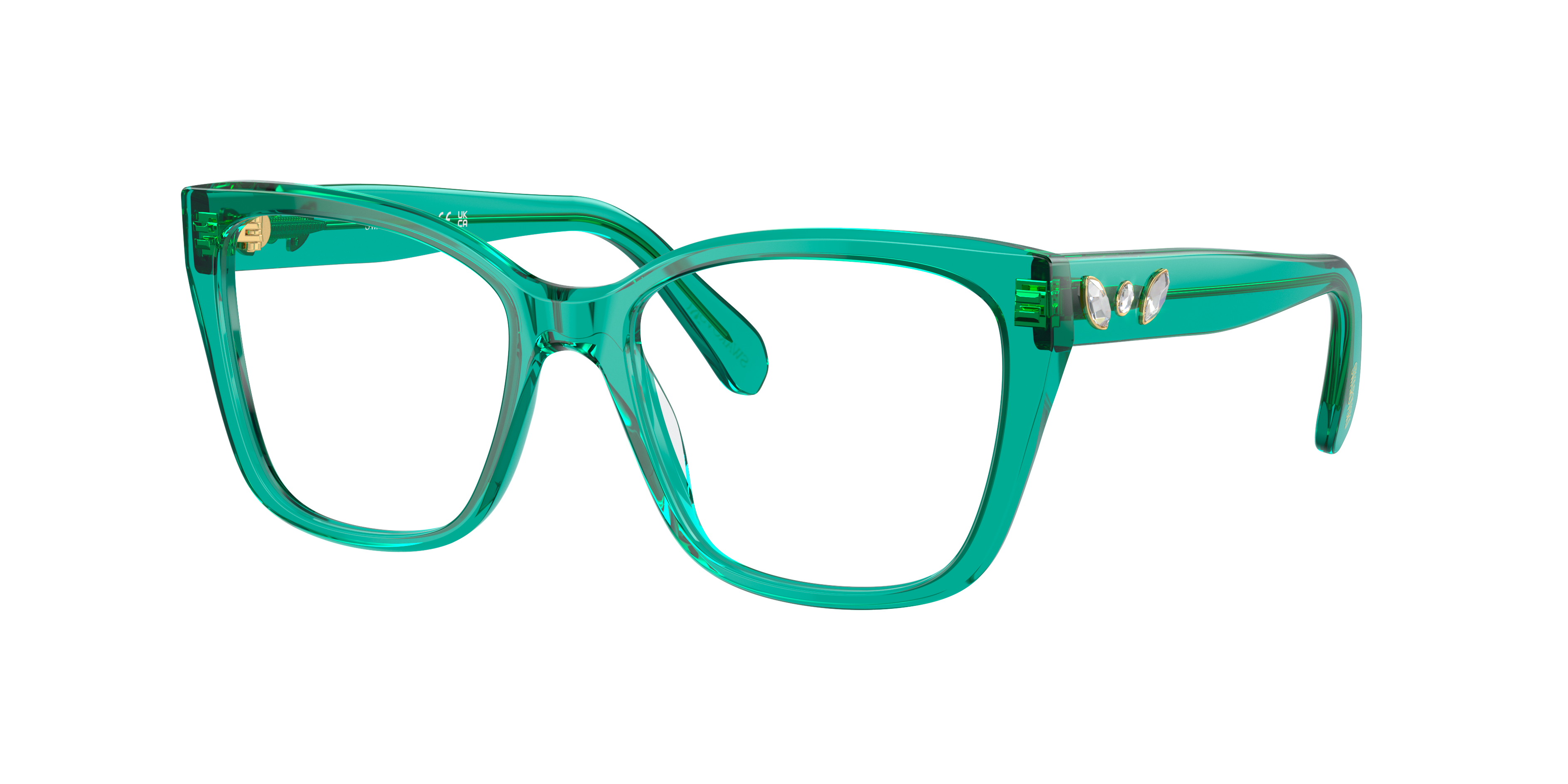 Elevate your fashion while optimizing optical performance with Swarovski SK2008 eyeglasses. The irregular shape of these frames, crafted from polished acetate in a vibrant crystal green color, adds a unique twist to your look. Strass detailing adds a touch of glamour to these eyeglasses. These frames are not only stylish but also functional.