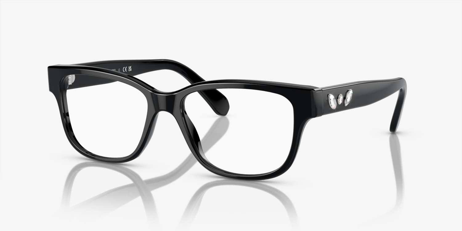 Discover the impeccable synergy of style and performance in Swarovski SK2007 eyeglasses. The polished black acetate frame, combined with the pillow shape, exudes a sophisticated and contemporary appeal. Strass detailing adds a touch of glamour to these frames, making them a must-have accessory for fashion-forward individuals. These glasses are not only stylish but also practical. Available with prescription lenses.