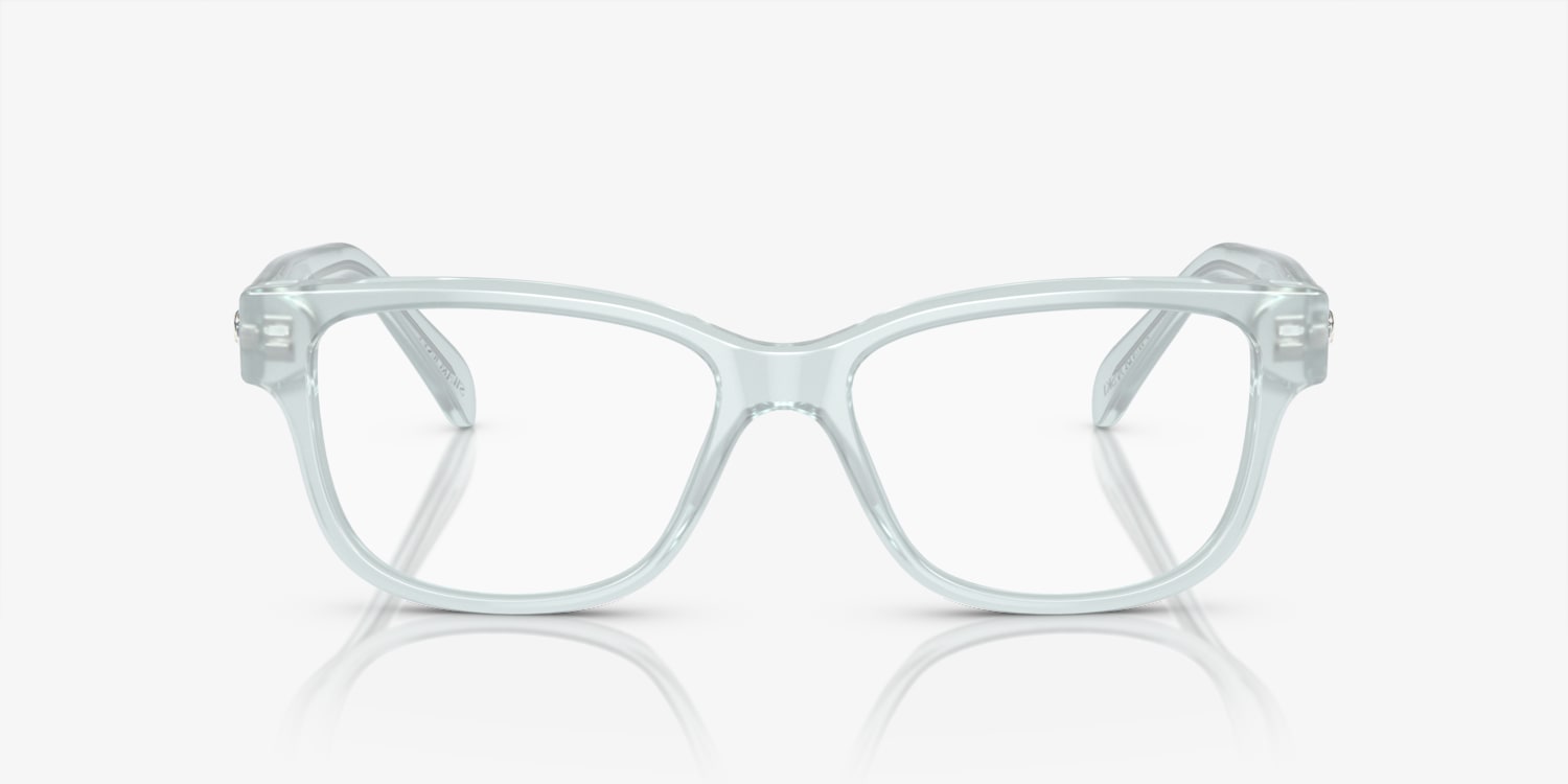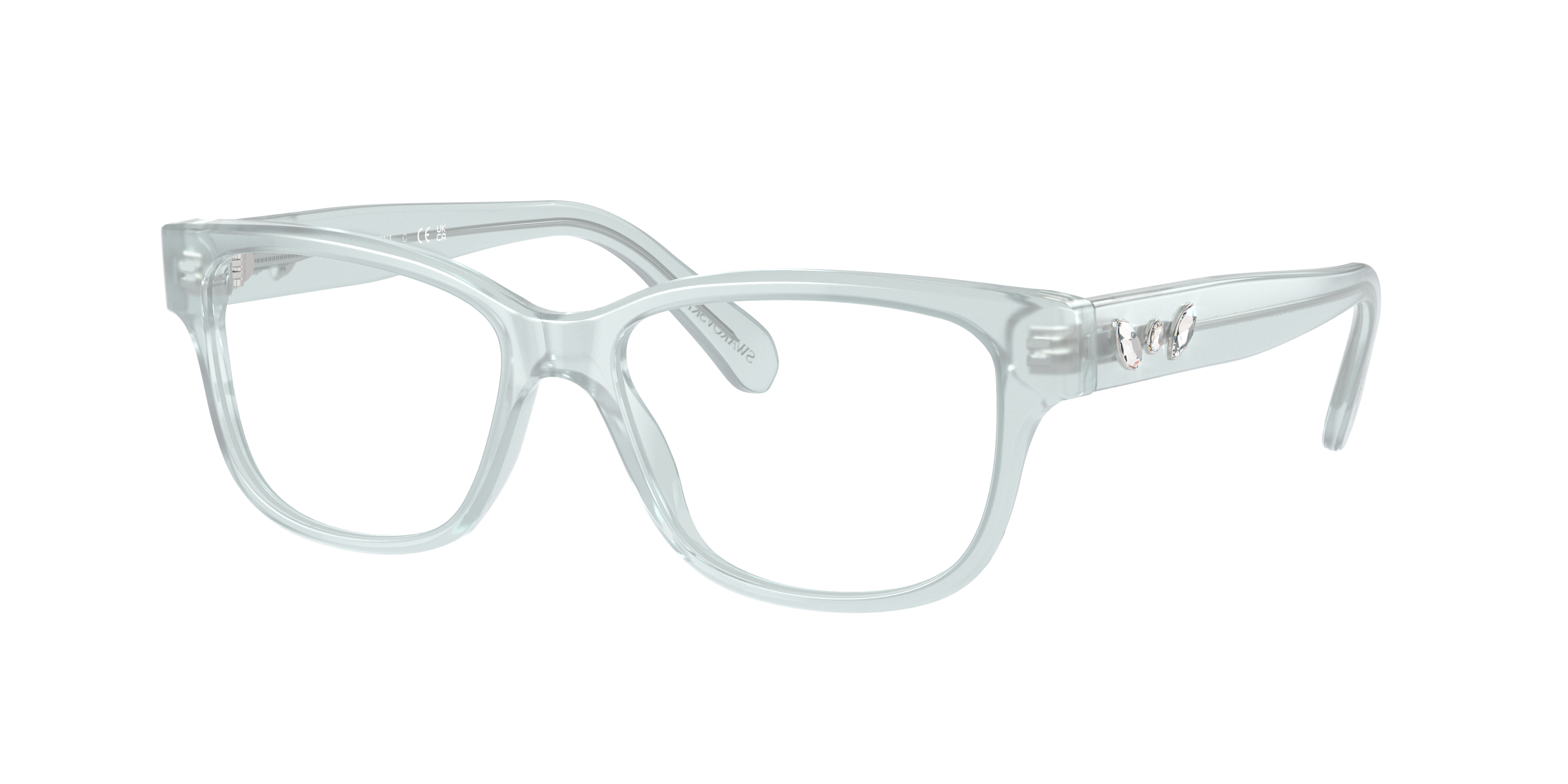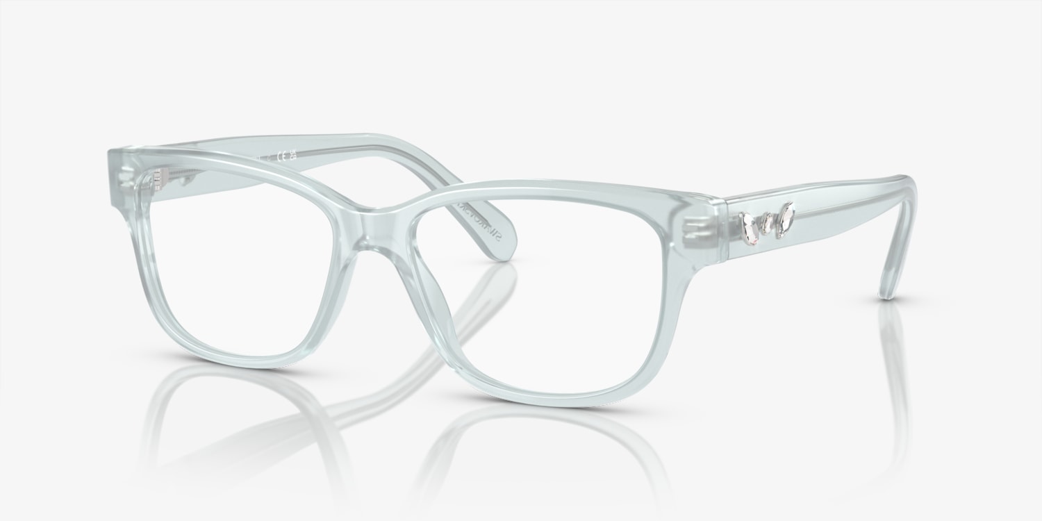 Experience the exquisite interplay of color and light with Swarovski SK2007 eyeglasses. The pillow shape, crafted from polished acetate, is a unique and modern take on a traditional design. The opal light blue frame color is complemented by strass detailing for added sparkle. These glasses are not just a fashion statement but also a practical accessory for everyday wear.