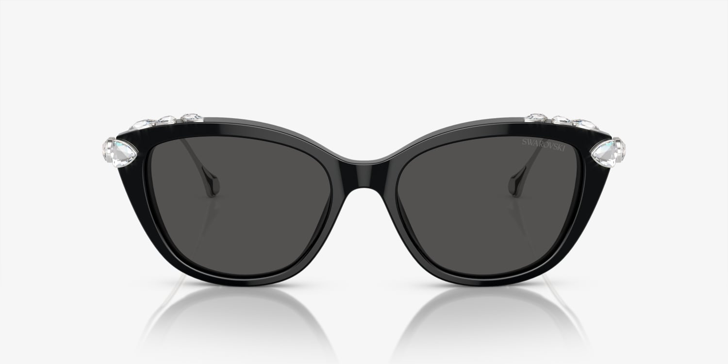 Elevate your style with Swarovski SK6010. The cat eye shape, paired with a polished black frame made of durable acetate, exudes elegance and sophistication. The solid dark grey lenses not only provide excellent protection but also add a touch of glamour with embedded strass on the frame. These shades are a must-have accessory for fashion-forward individuals.