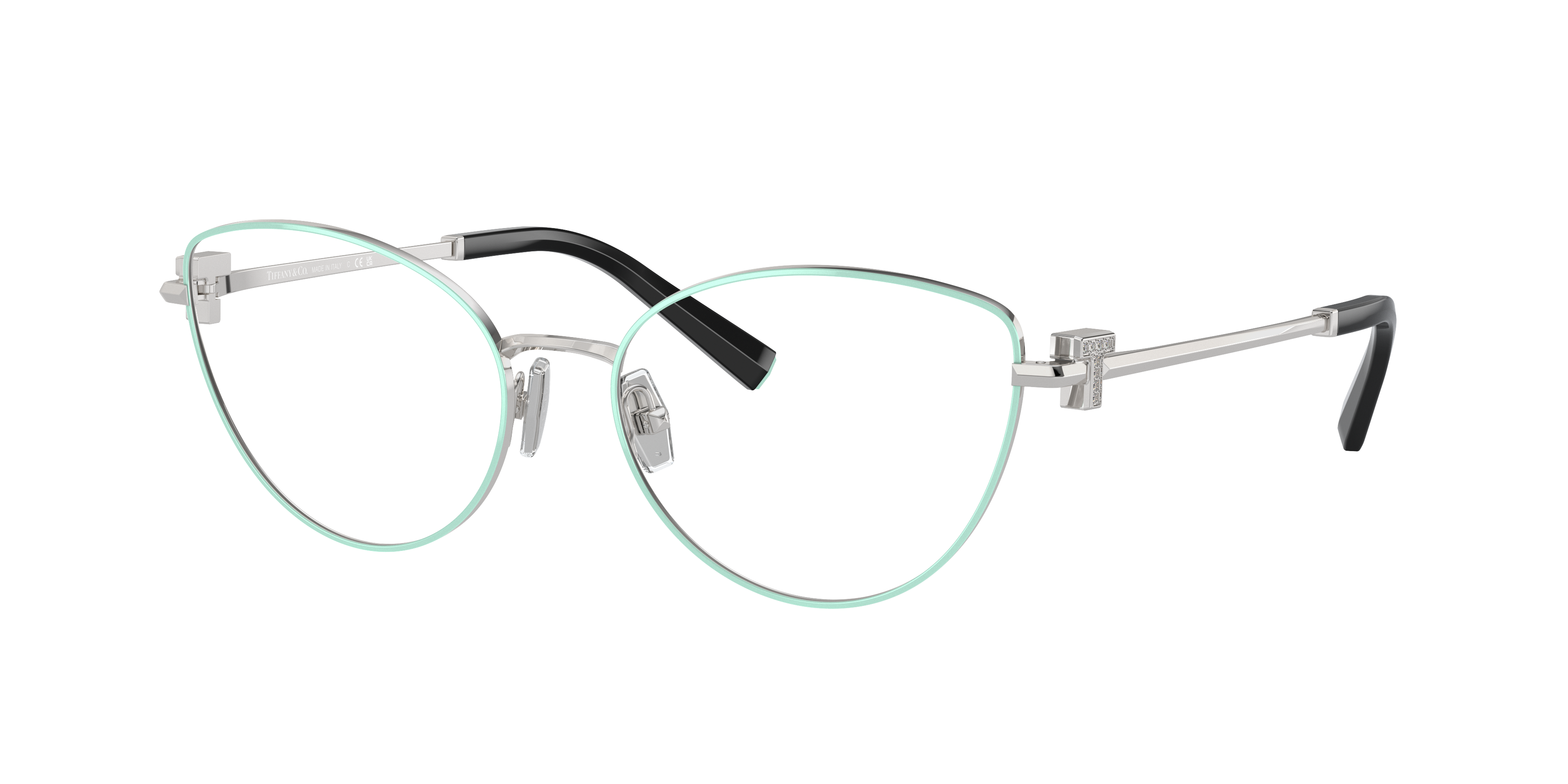 Experience the epitome of luxury with Tiffany & Co. TF1159B Optical. These cat eye glasses feature a polished tiffany blue on silver frame made of durable steel, and are adorned with strass for added sparkle. The unique color scheme and shape make these frames a stylish choice for everyday wear. Available with prescription lenses.