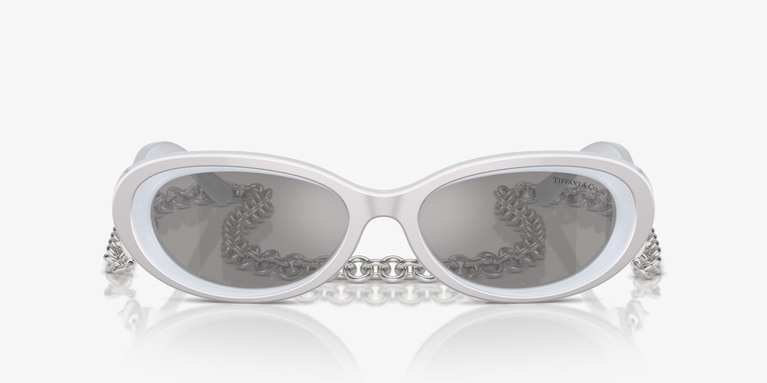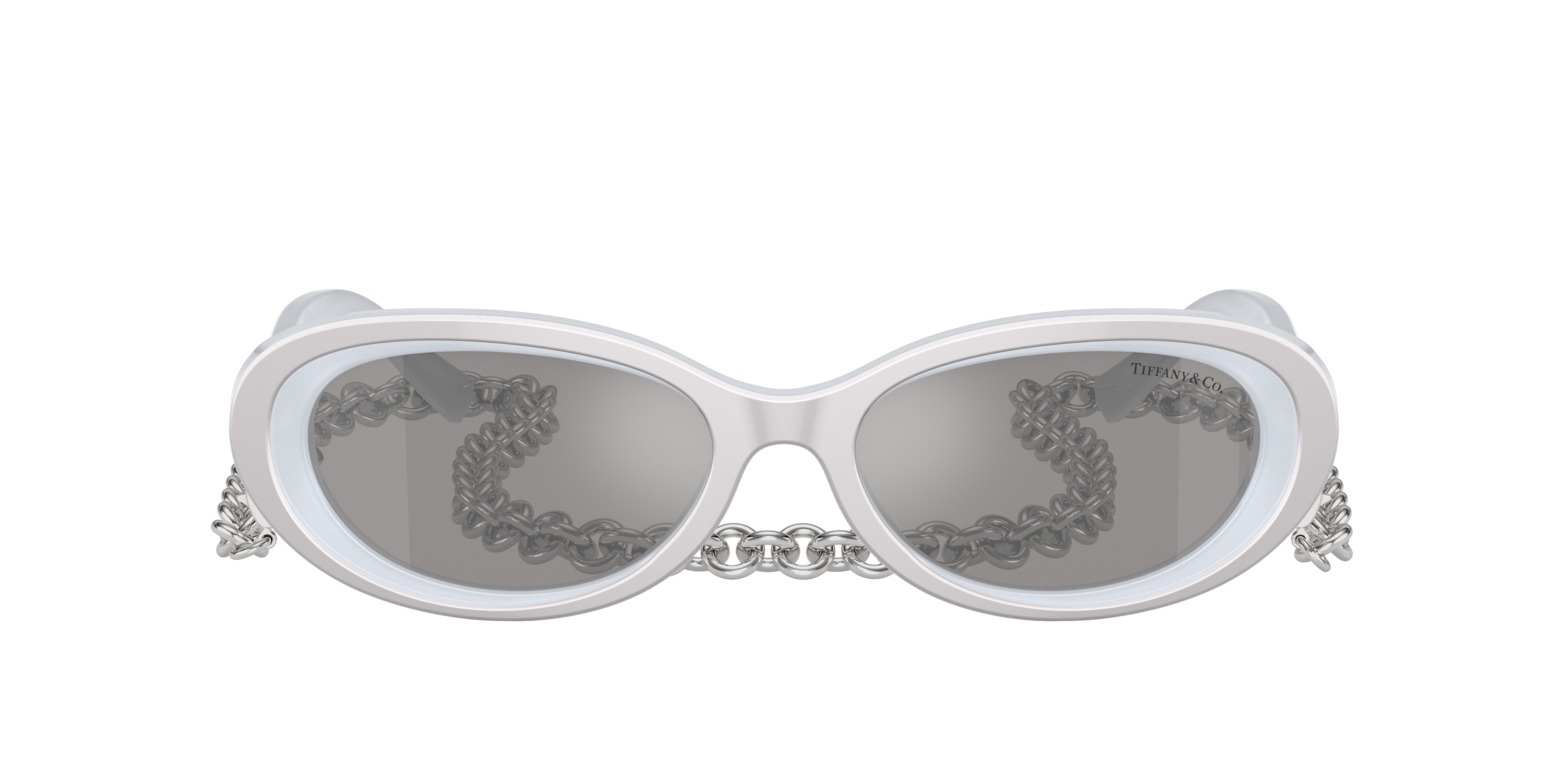 Elevate your fashion with Tiffany & Co. TF4221. The oval shape, crafted from high-quality acetate, is a timeless and versatile choice for any face shape. The polished silver metallic frame adds a touch of glamour and sophistication to these glasses. The light grey mirror silver lenses provide both style and functionality, making these shades a must-have accessory this season. Available with prescription lenses.