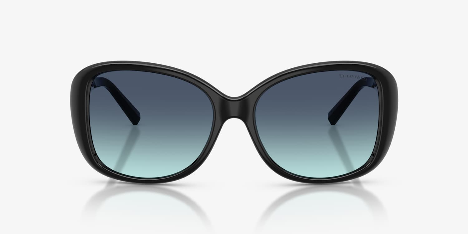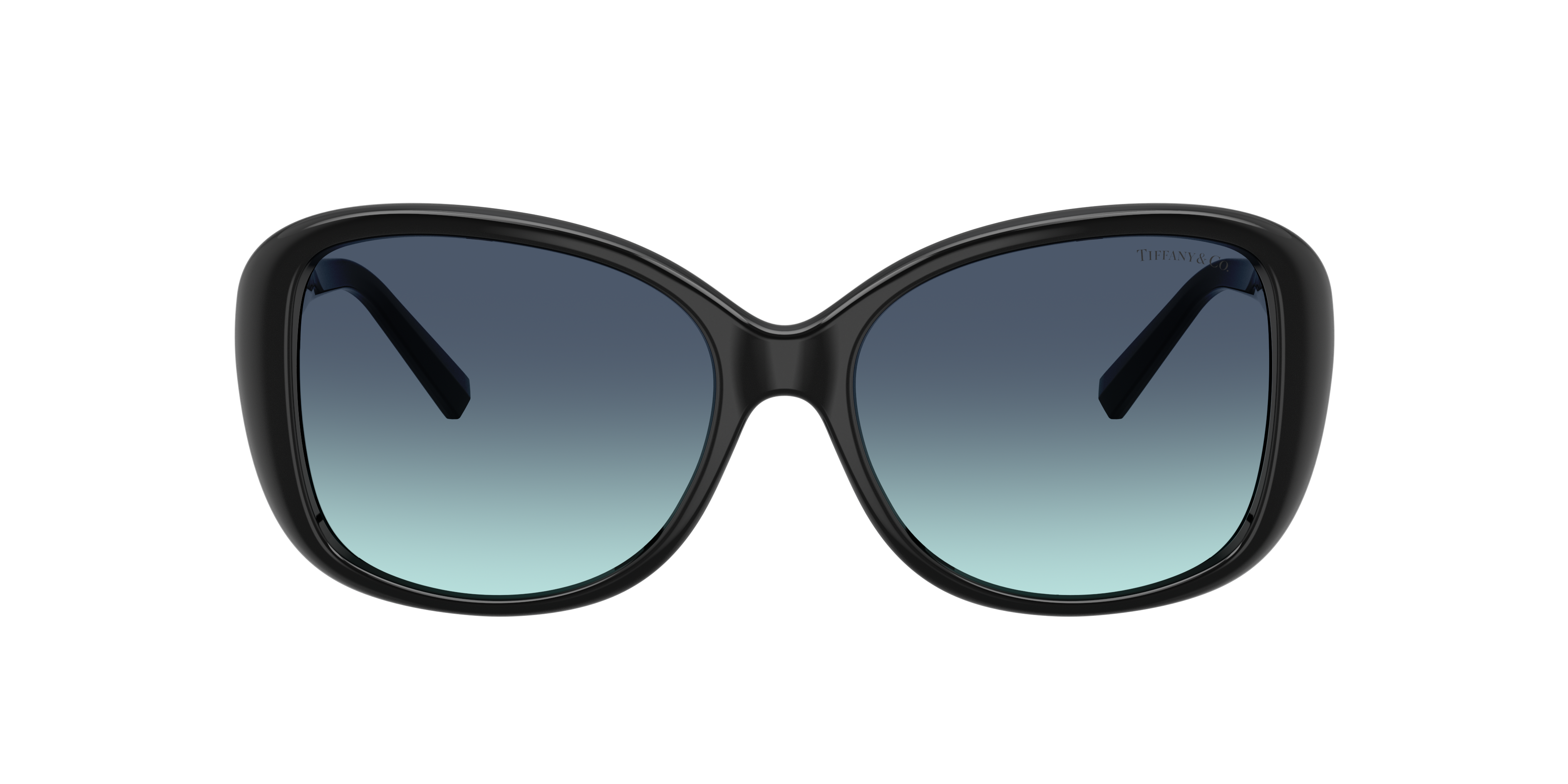 The Tiffany & Co. TF4257U sunglasses combine fashion and elegance with their pillow-shaped black plastic frames and full-rim design. The oversized look features the iconic Return to Tiffany® heart tag reimagined as a functional hinge, subtly revealing a Tiffany Blue® enamel detail when closed. These black sunglasses feature gradient blue lenses that add timeless sophistication while providing 100% UVA/UVB protection. Metal temples complete these refined Tiffany & Co. sunglasses with a contemporary touch.