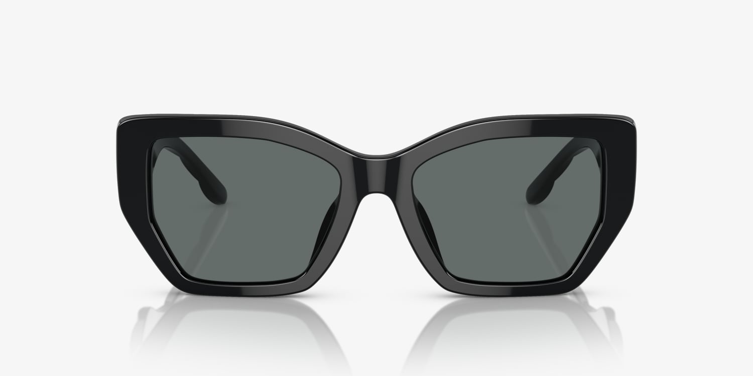 Experience the perfect balance of style and functionality with Tory Burch TY7187U sunglasses. These glasses features an irregular shape that adds a unique touch to your look, while the black acetate frame ensures durability and comfort. The solid dark grey polarized lenses not only provide excellent protection but also add a stylish edge to these shades. Embrace your individuality with these trendy, yet practical, sunglasses from Tory Burch. Available with prescription lenses.