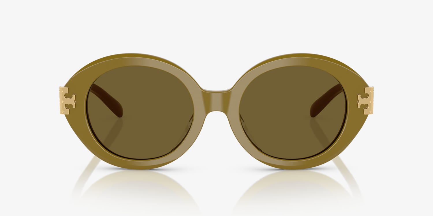 Elevate your fashion standards with Tory Burch TY7210U sunglasses. The oval shape and polished olive green acetate frame offers a modern twist to a timeless silhouette. The solid color treatment on the olive brown lenses adds a touch of sophistication, making these shades perfect for any occasion. Embrace the epitome of chic with these stylish glasses from Tory Burch. Available with prescription lenses.