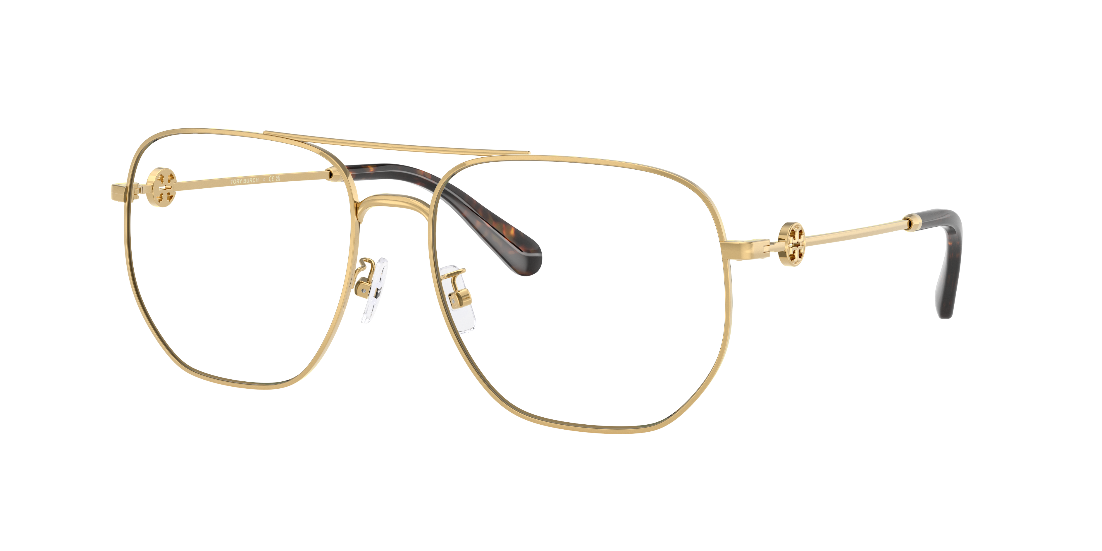 Enhance your style with Tory Burch TY1090 eyeglasses. Made from strong metal, the pilot shape gives a classic look that suits everyone. The shiny gold frame color adds a glamorous touch to your daily style. These glasses have a flexible design that can be tailored to fit your individual vision preferences. Embrace elegance and practicality with these beautiful frames. Available with prescription lenses.