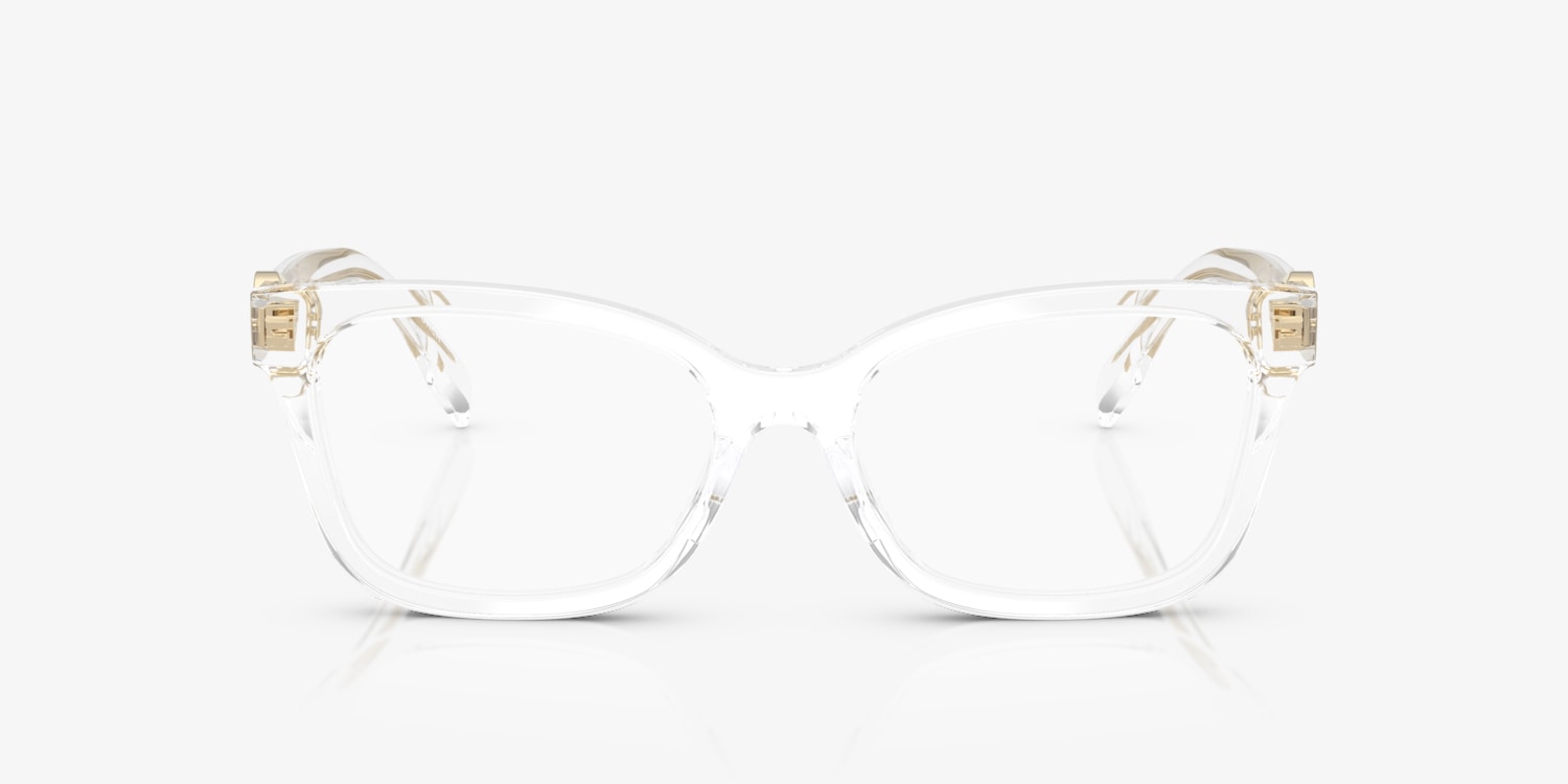 Experience the epitome of sophistication with Tory Burch TY2159U eyeglasses. The polished transparent clear acetate frame in a unique phantos shape adds a modern twist to a timeless design. These frames features a saddle bridge for added comfort and are fitted with lenses in a matching color for an integrated look. Whether you're looking for fashion or function, these glasses are the perfect choice. Available with prescription lenses.