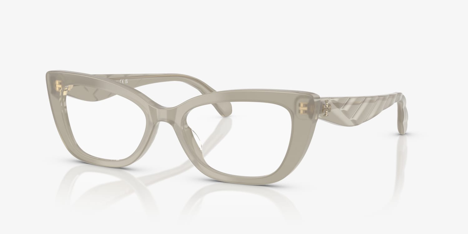 Experience the perfect blend of style and optical functionality with Tory Burch TY2155U eyeglasses. Crafted in a unique cay-eye shape, these frames features a polished milky grey green acetate material that adds a touch of sophistication to any look. The saddle bridge ensures a comfortable fit for all-day wear. Embrace your individuality with these stylish and versatile glasses. Available with prescription lenses.