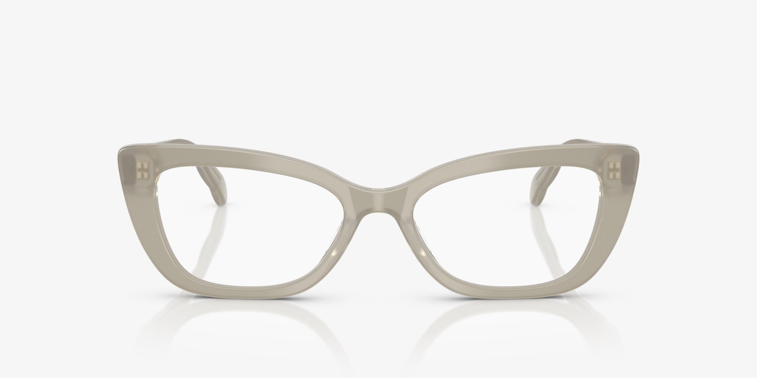 Experience the perfect blend of style and optical functionality with Tory Burch TY2155U eyeglasses. Crafted in a unique cay-eye shape, these frames features a polished milky grey green acetate material that adds a touch of sophistication to any look. The saddle bridge ensures a comfortable fit for all-day wear. Embrace your individuality with these stylish and versatile glasses. Available with prescription lenses.