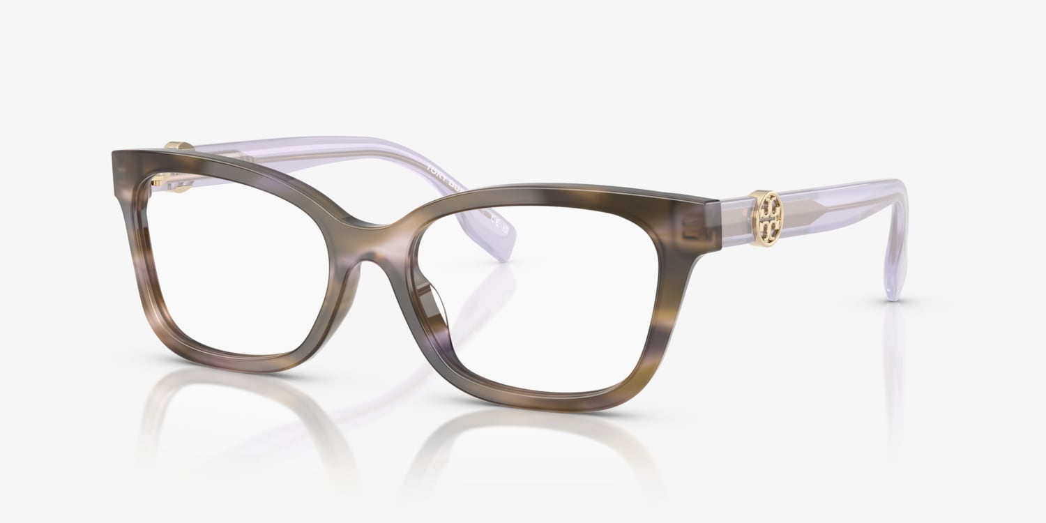 Experience the epitome of style and sophistication with Tory Burch TY2159U eyeglasses. The polished, striated purple acetate frame in a phantos shape exudes elegance and sophistication. These frames features a saddle bridge for added comfort and a perfect fit. With their unique design and superior craftsmanship, these glasses are a must-have accessory for any fashion-forward individual. Available with prescription lenses.