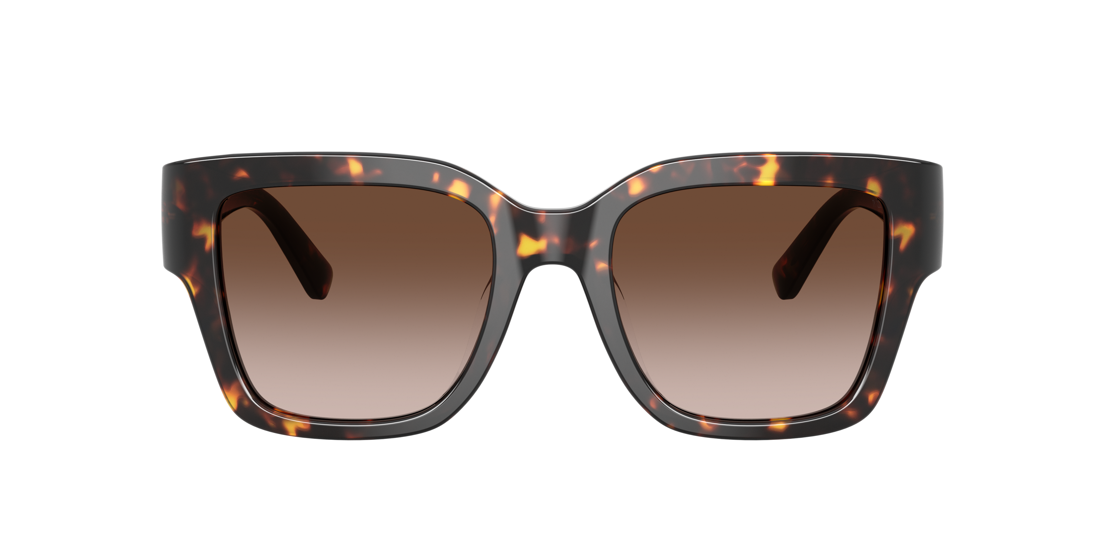 Elevate your style with the Tory Burch TY7228U sunglasses. These Tory Burch sunglasses feature square frames crafted from durable plastic, combining sharp angles with a sleek saddle bridge for a modern, structured look. Finished with a tortoise front and brown gradient lenses, these tortoise sunglasses provide both sophistication and visual ease. Transparent acetate temples feature a cut-out Double T logo for unique detailing. Engineered in bio-based acetate, they deliver sustainable elegance.