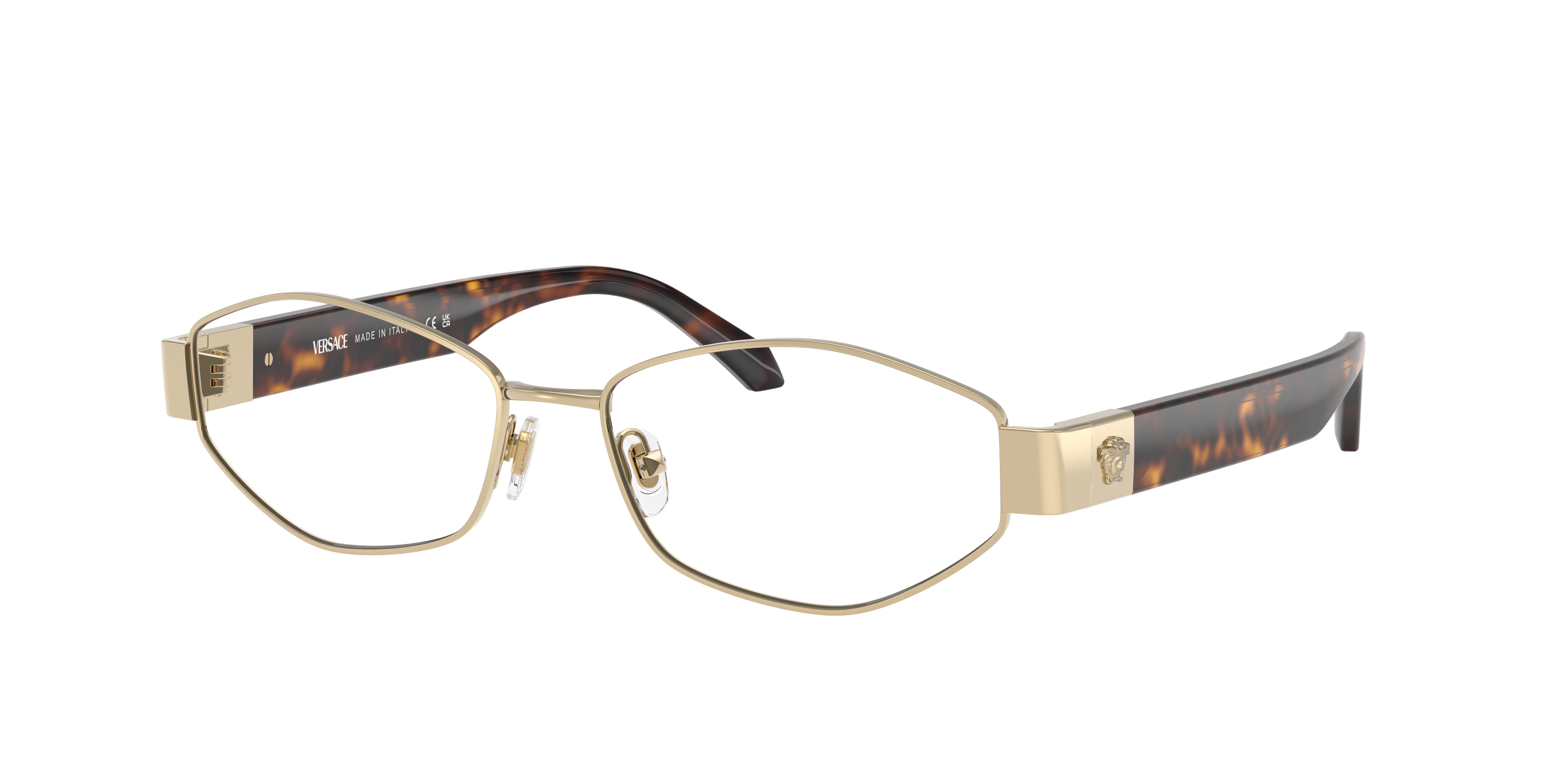 Discover the meticulous craftsmanship that unites style and optical functionality in Versace VE1298. These irregular-shaped glasses feature a shiny pale gold metal frame that exudes elegance and sophistication. The black color of the frame adds a touch of mystery, making these shades a must-have accessory for any fashion-forward individual. Available with prescription lenses.