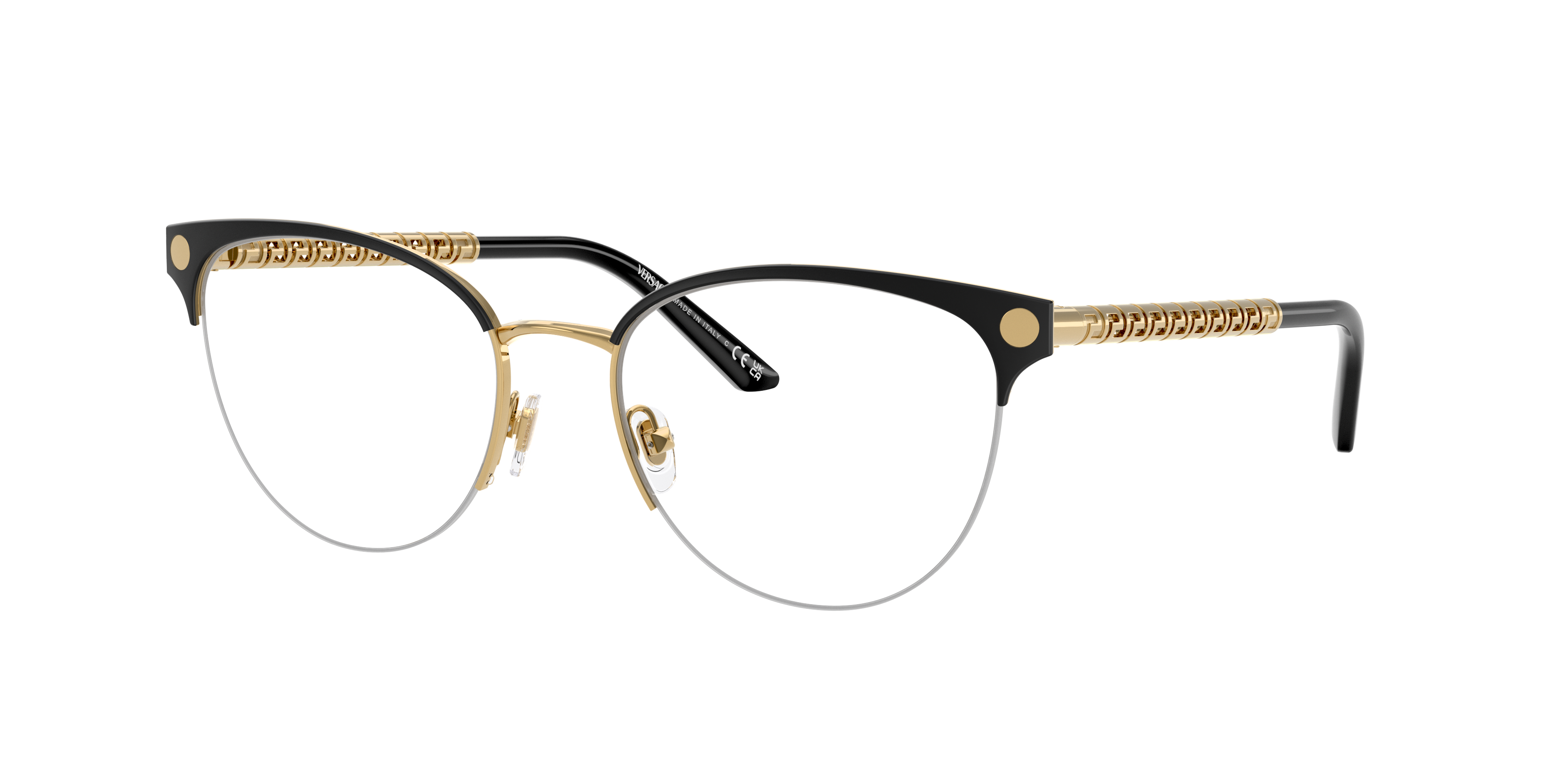 Elevate your fashion quotient with Versace VE1297 optical glasses. The cat eye shape, combined with a polished gold/matte black metal frame, gives these glasses a unique and sophisticated look. The frame is designed to be durable and lightweight, ensuring maximum comfort throughout the day. These frames are not just stylish but also practical. Embrace the boldness of Versace with these stunning shades. Available with prescription lenses.