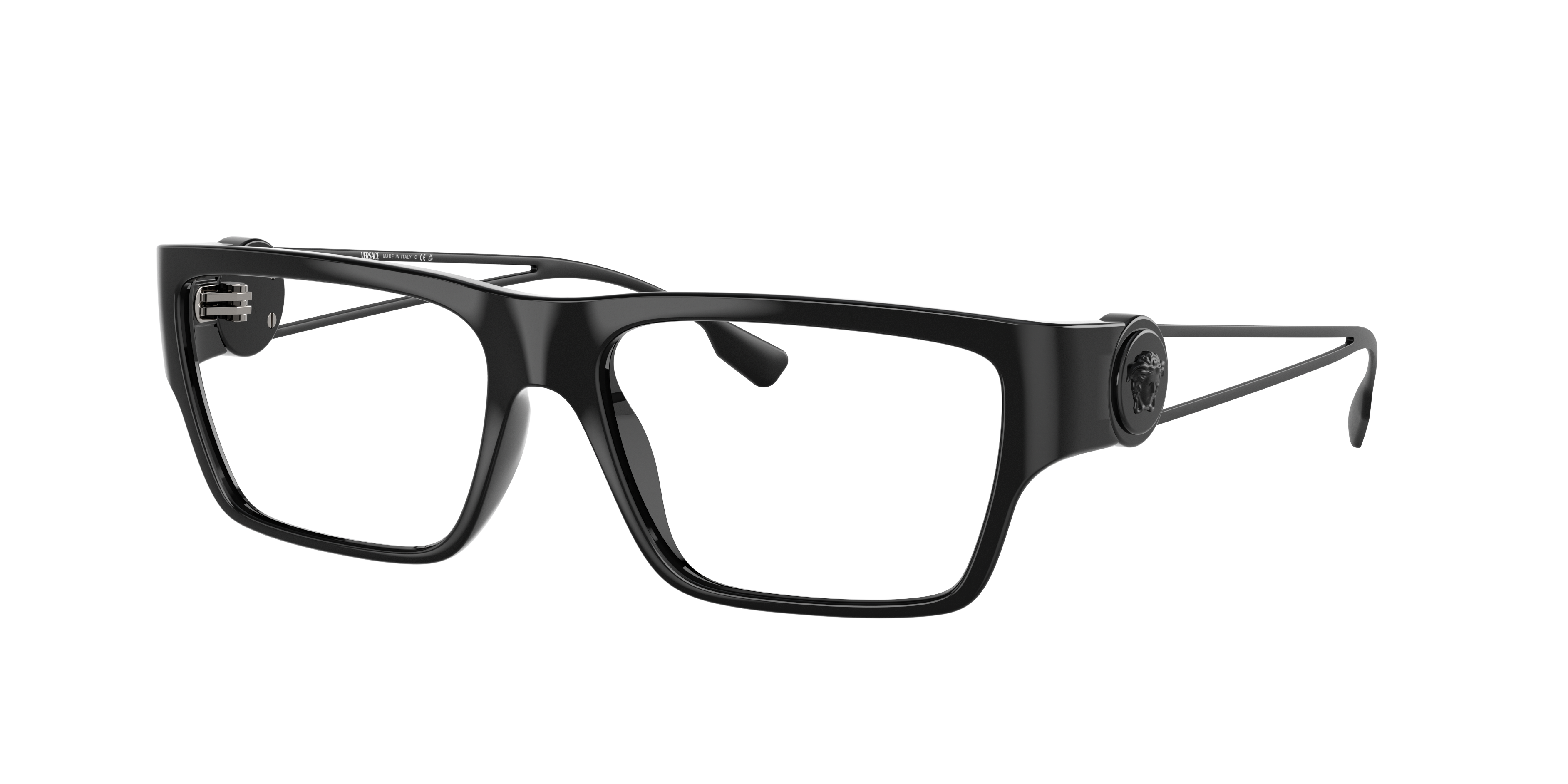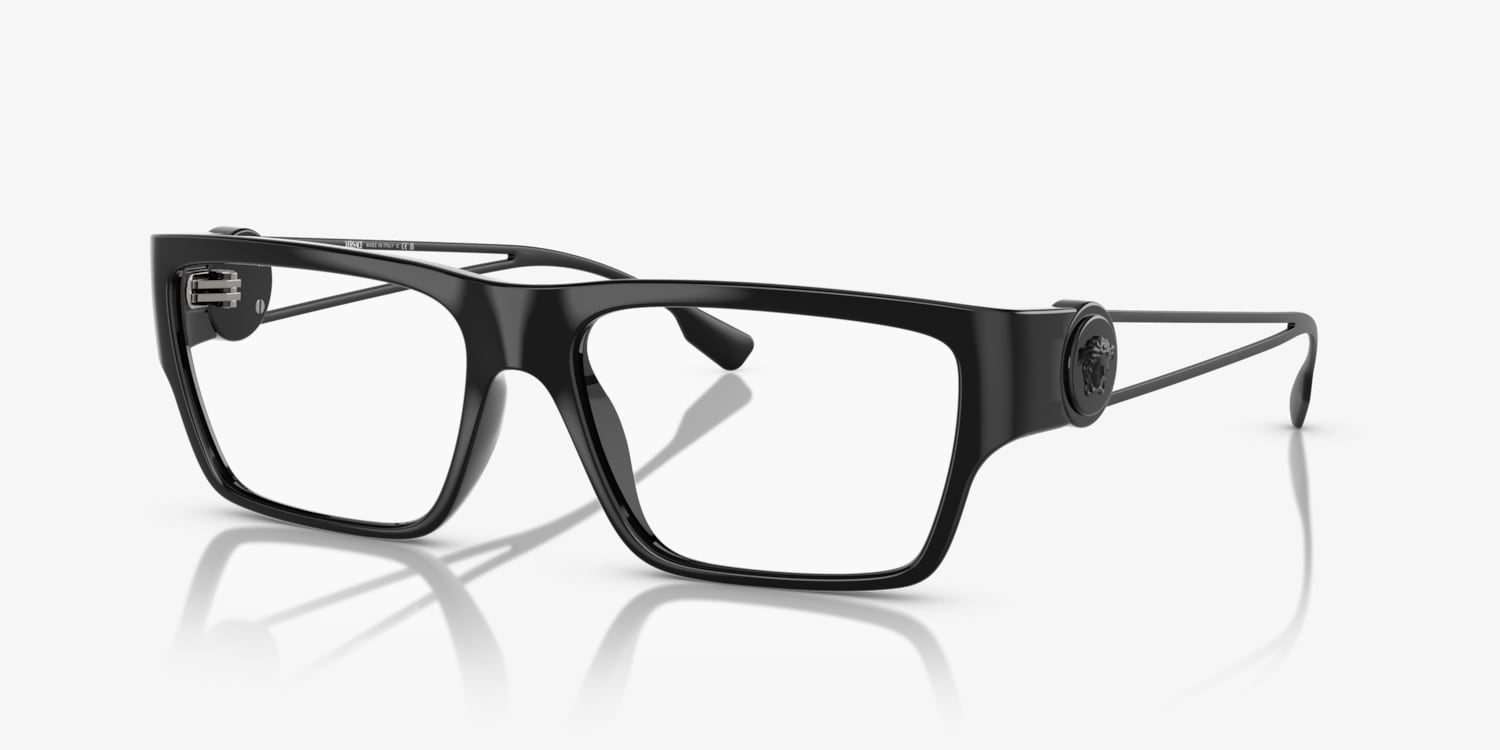 Elevate your style quotient with Versace VE3359 optical glasses. These rectangle-shaped frames feature a polished matte black finish that exudes a timeless appeal. The frame color creates an effortlessly sleek look. These glasses are not just stylish, but also practical and versatile. Embrace the power of fashion and make a statement with Versace VE3359. Available with prescription lenses.