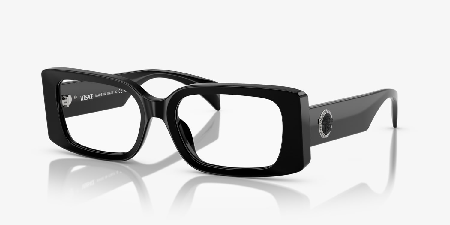 Discover the perfect blend of style and practicality with Versace VE3362U rectangular optical glasses. These expertly crafted rectangle frames are made from long-lasting acetate, ensuring a comfortable fit and extended durability. The glossy black coating adds an element of elegance, transforming these glasses into a fashionable option for daily use. These rectangular frames guarantee exceptional vision while complementing the sleek design. Available with prescription lenses.
