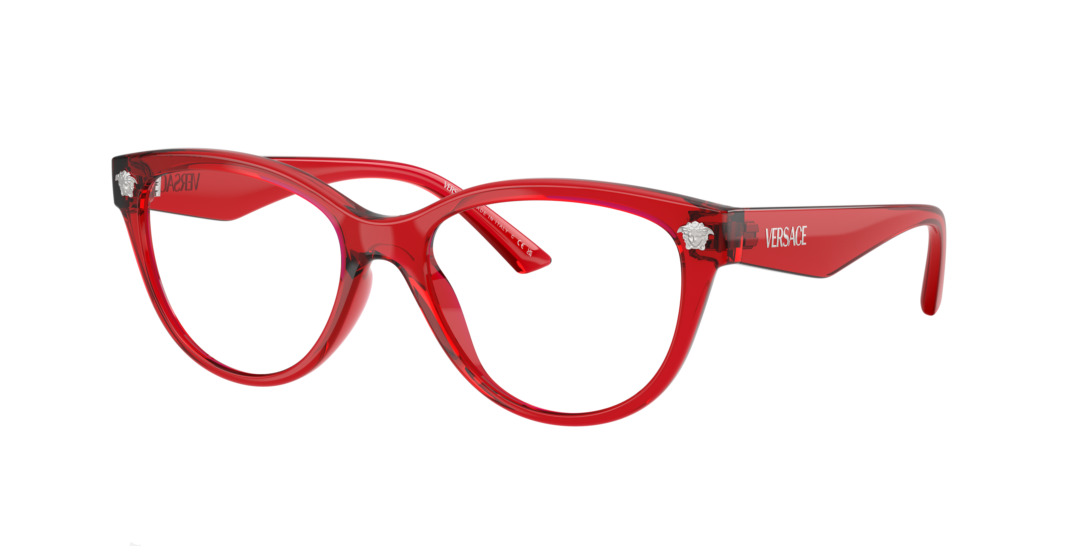 Elevate your style quotient with the Versace VE3365U optical frames. The polished red cay-eye shape adds a touch of glamour to any look, while the black color finish ensures a sleek and sophisticated appearance. These glasses features a unique design that will make you stand out from the crowd. Experience the ultimate in luxury and fashion with these stunning shades. Available with prescription lenses.