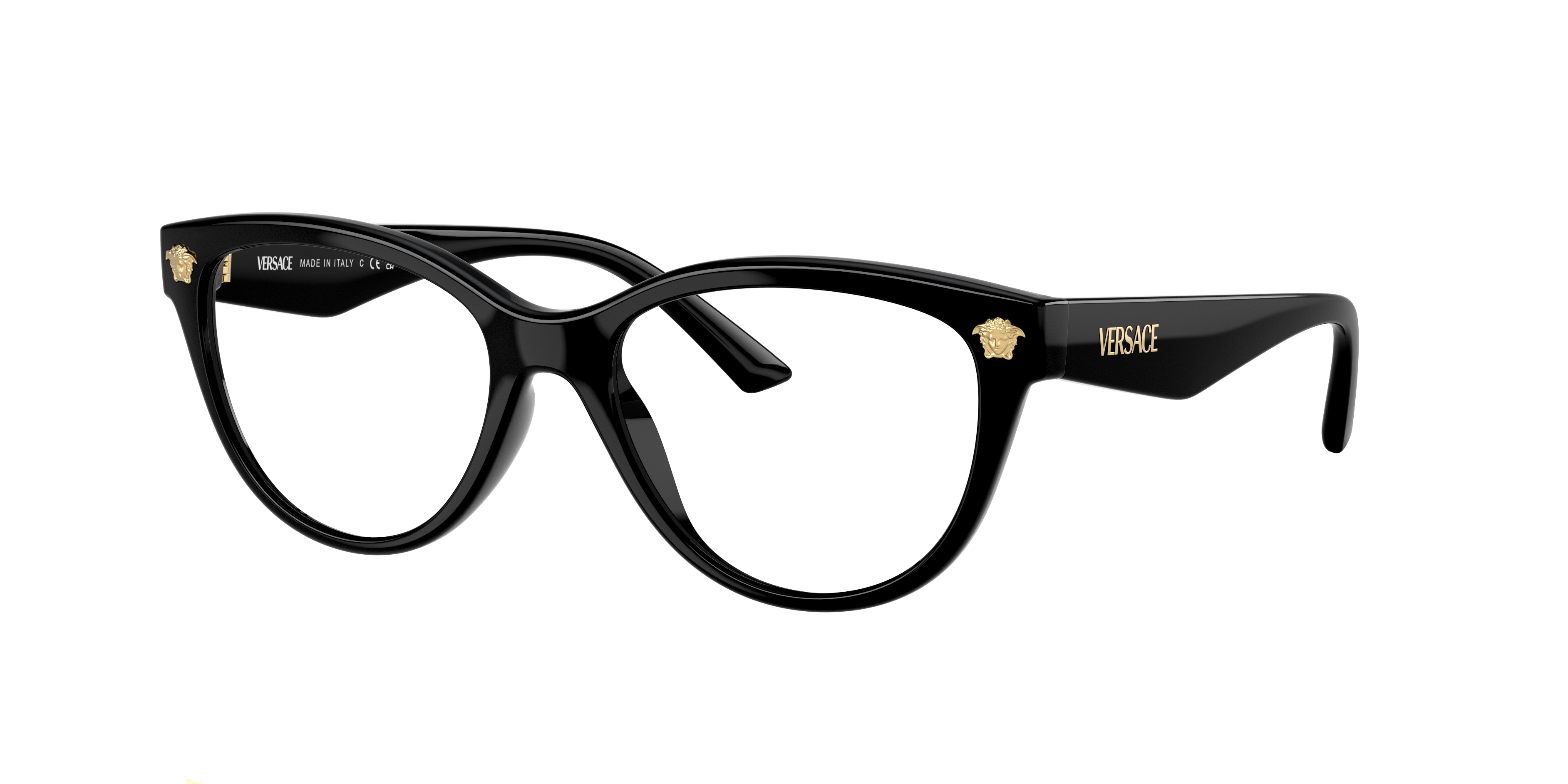 Discover the meticulous craftsmanship that unites style and optical functionality in Versace VE3365U. These cay-eye glasses features a polished black frame that adds a touch of sophistication to any look. The frame's unique design, combined with the high-quality material, ensures durability and comfort for everyday wear. Embrace your individuality and express your unique style with these versatile frames. Available with prescription lenses.