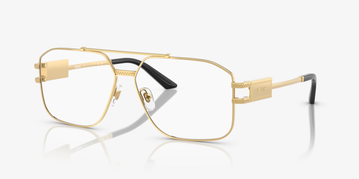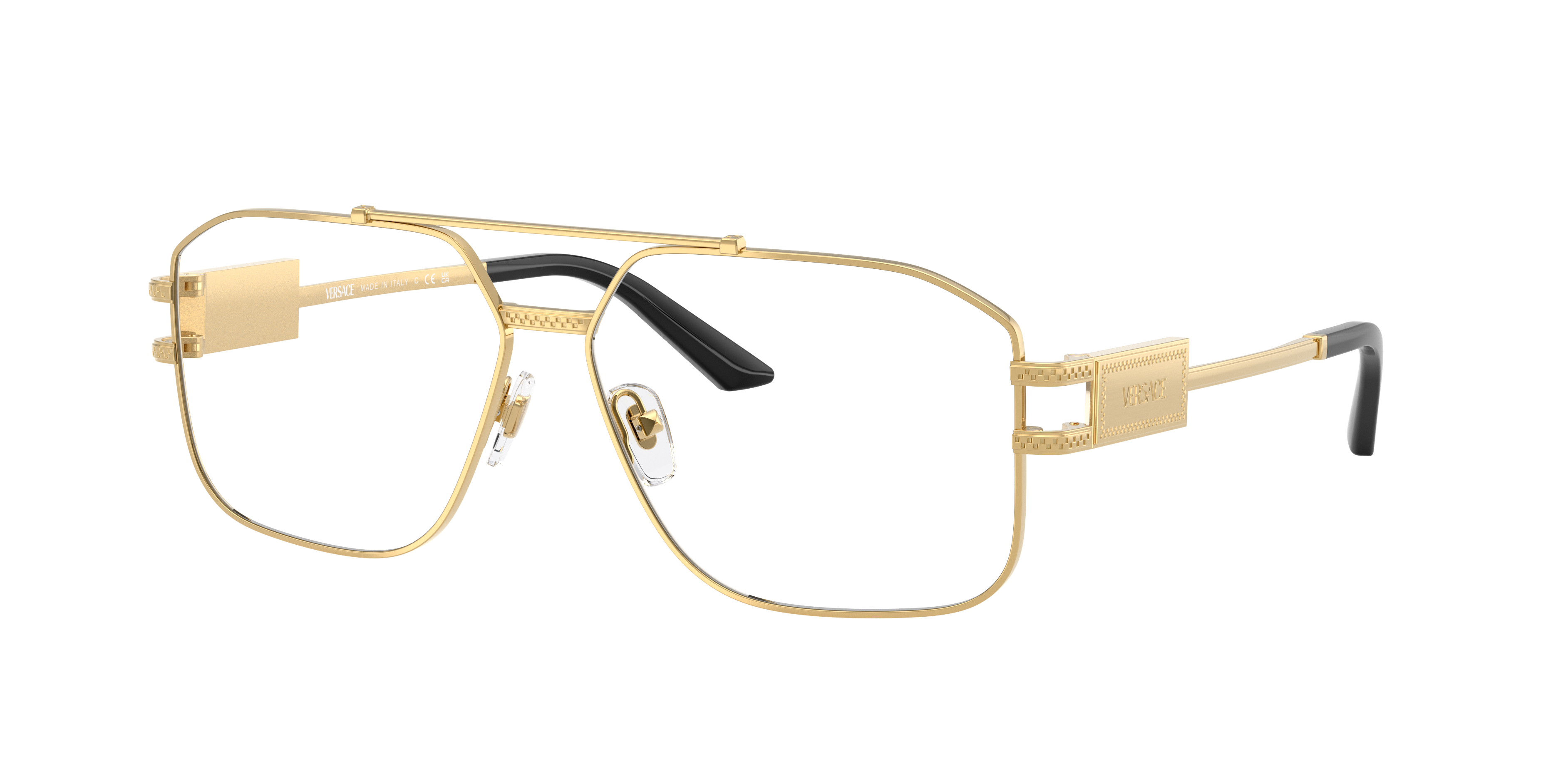 Elevate your fashion quotient while wearing the Versace VE1302 eyeglasses. The irregular shape adds a touch of uniqueness to these frames, crafted from durable steel. The polished gold finish and solid color lenses in a contrasting black shade create a striking look that is sure to turn heads. These glasses are not only stylish but also practical. Available with prescription lenses.