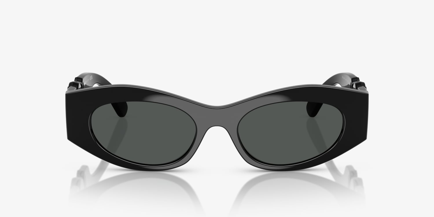 Versace VE4480U shades are a perfect blend of elegance and functionality. The oval shape and polished black frame offers a timeless appeal, while the solid color treatment on the lenses adds a touch of sophistication. These glasses feature dark grey lenses, providing optimal protection against harmful UV rays. Embrace the luxurious style embodied by these exquisite shades. Available with prescription lenses.