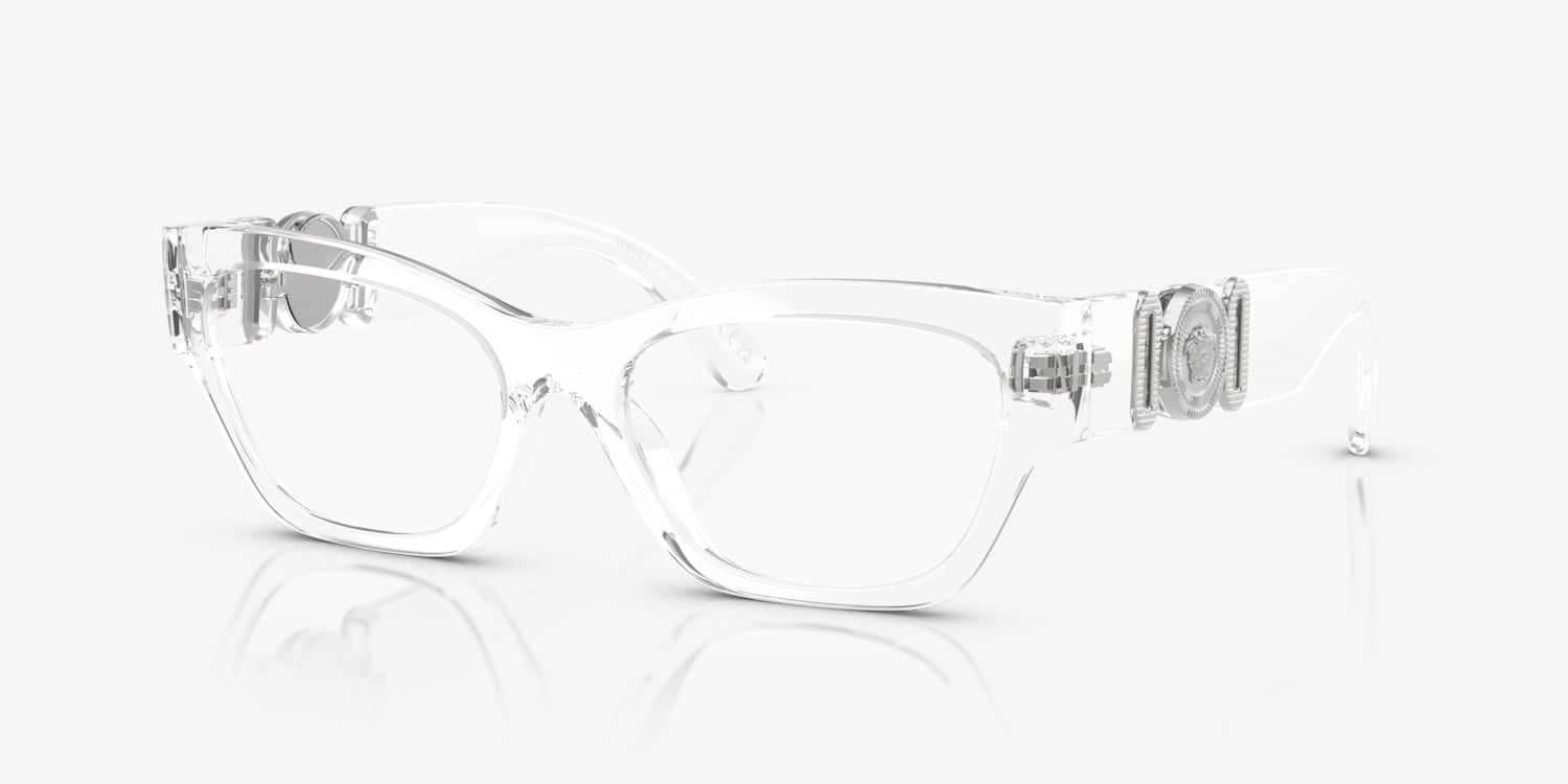 Elevate your fashion while optimizing optical performance with Versace VE3367U, featuring a polished crystal frame in a cay-eye shape that exudes timeless elegance. These glasses offers a solid color treatment in the lens, which is further enhanced by the elegant black rims. The frame color is designed to complement any outfit, making these shades a versatile choice for everyday wear. With their sleek design and impeccable attention to detail, Versace VE3367U are the perfect accessory for those who value both style and comfort. Available with prescription lenses.