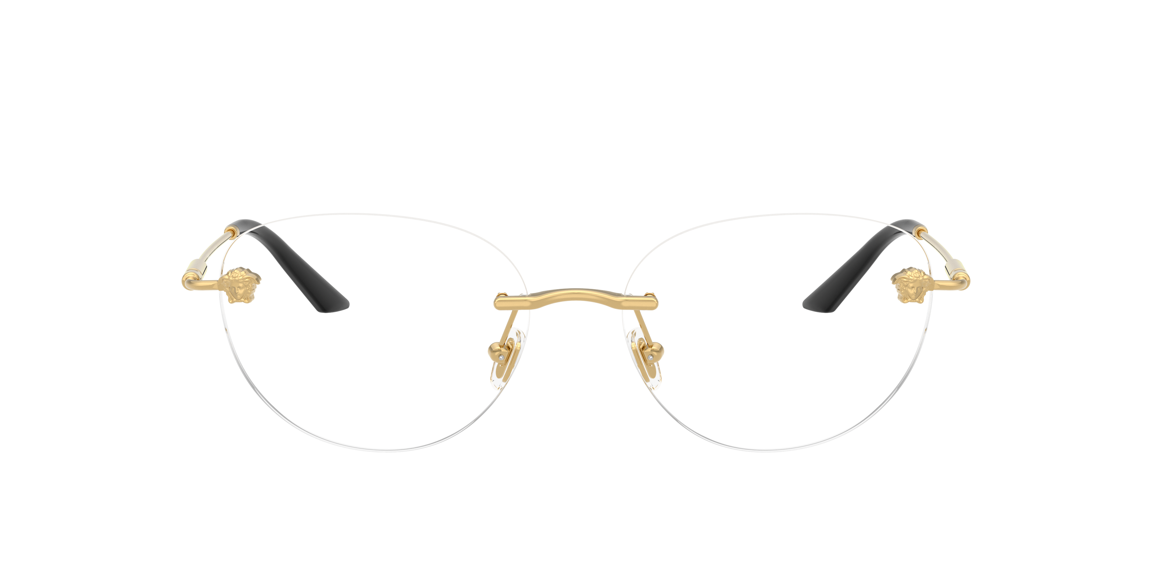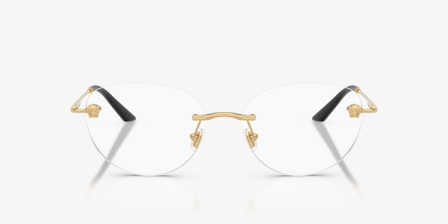Elevate your fashion and enhance your vision with Versace VE1305 eyeglasses. The round shape and polished gold metal frame, paired with a black finish, give these glasses a timeless appeal. These shades are not only stylish but also versatile, making them an ideal choice for any occasion. With their sleek design and high-quality construction, these frames are a must-have accessory for any fashion-forward individual. Available with prescription lenses.
