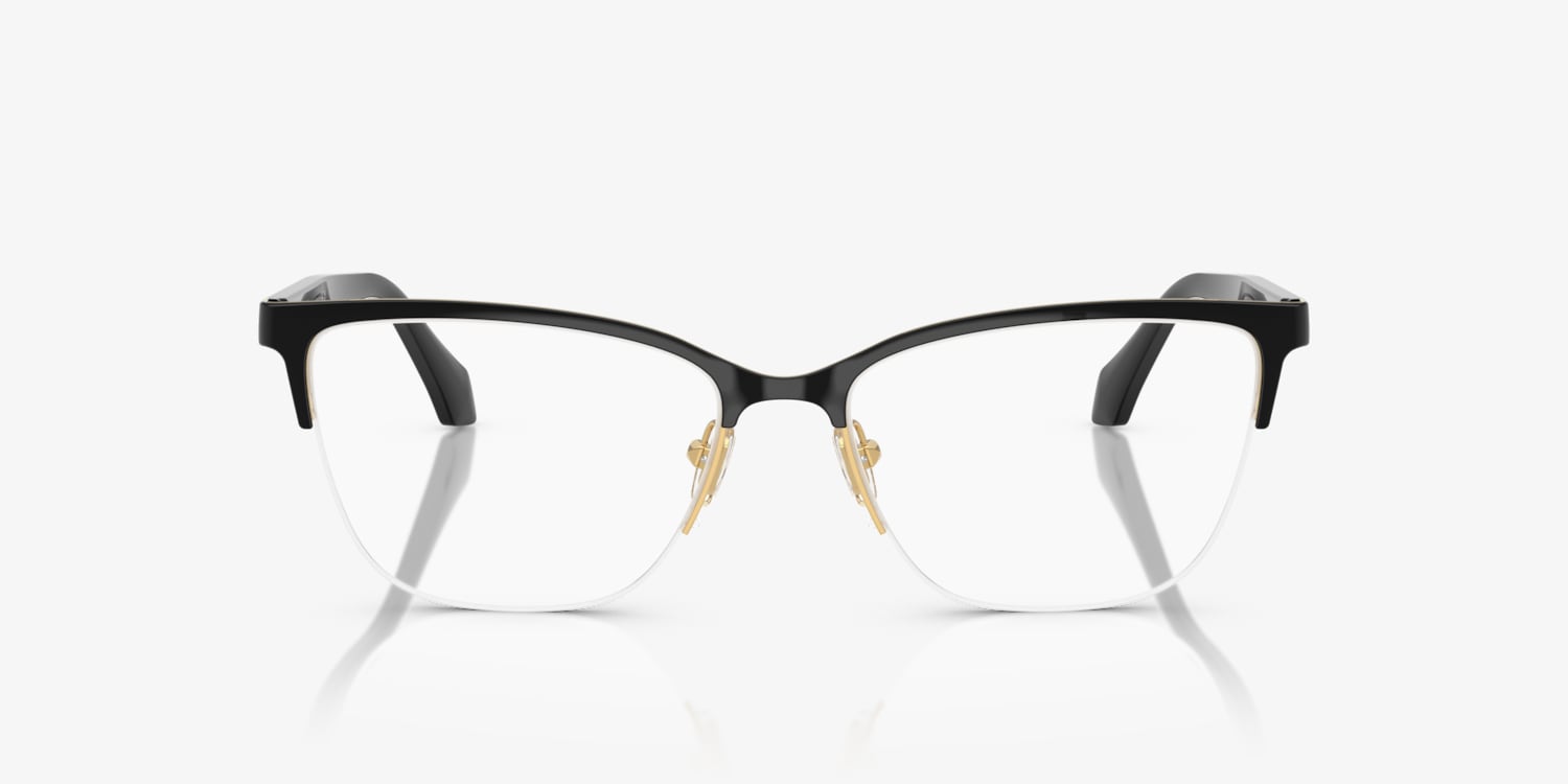 Elevate your fashion quotient with Versace VE1304 eyeglasses. The cay-eye shape adds a touch of sophistication, while the polished gold black metal frame ensures durability and comfort. These frames features a unique design detail, with black insets on the temples that contrast beautifully against the gold color. Embrace your inner style icon with these stunning shades. Available with prescription lenses.