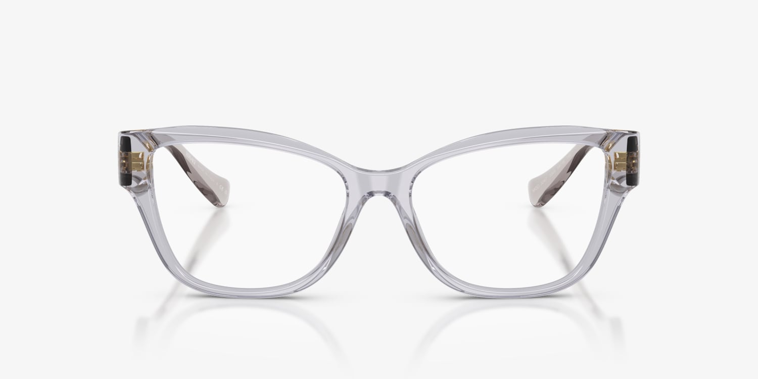 Elevate your optical fashion game with Versace VE3347. These glasses feature a polished light grey transparent acetate frame in a unique pillow shape, offering a modern and sophisticated look. The black frame color adds contrast and depth to the overall design. These glasses are not only stylish but also practical, ensuring you look great while seeing clearly. Embrace luxury with these exquisite frames from Versace.