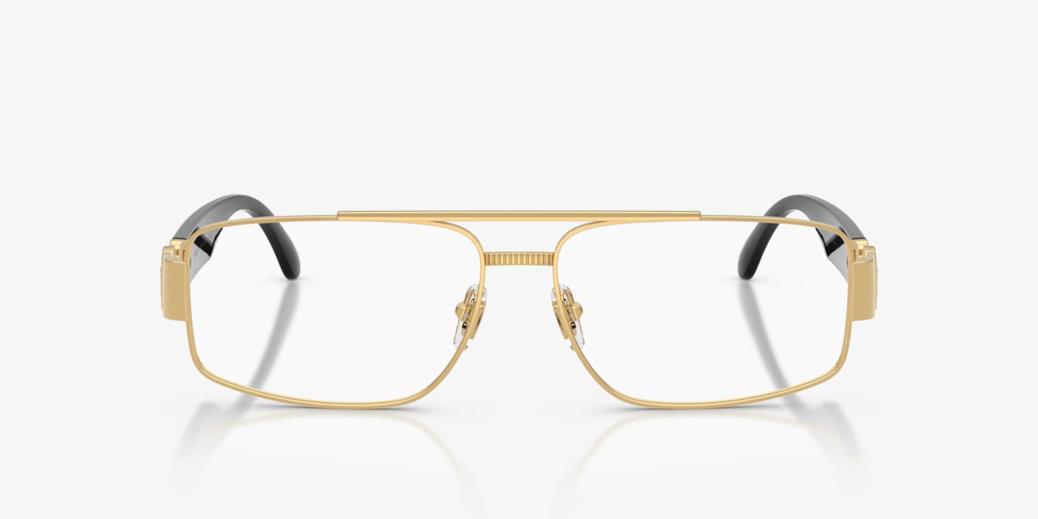 Experience timeless luxury with the Versace VE1317 optical glasses. These full-rim rectangular frames in gold metal showcase a sleek and structured silhouette. Inspired by the Medusa Biggie, their design exudes 90s hip-hop opulence, complete with original temple decor in a refined size. Adjustable nosepads glasses ensure a comfortable fit, making them both iconic and practical.