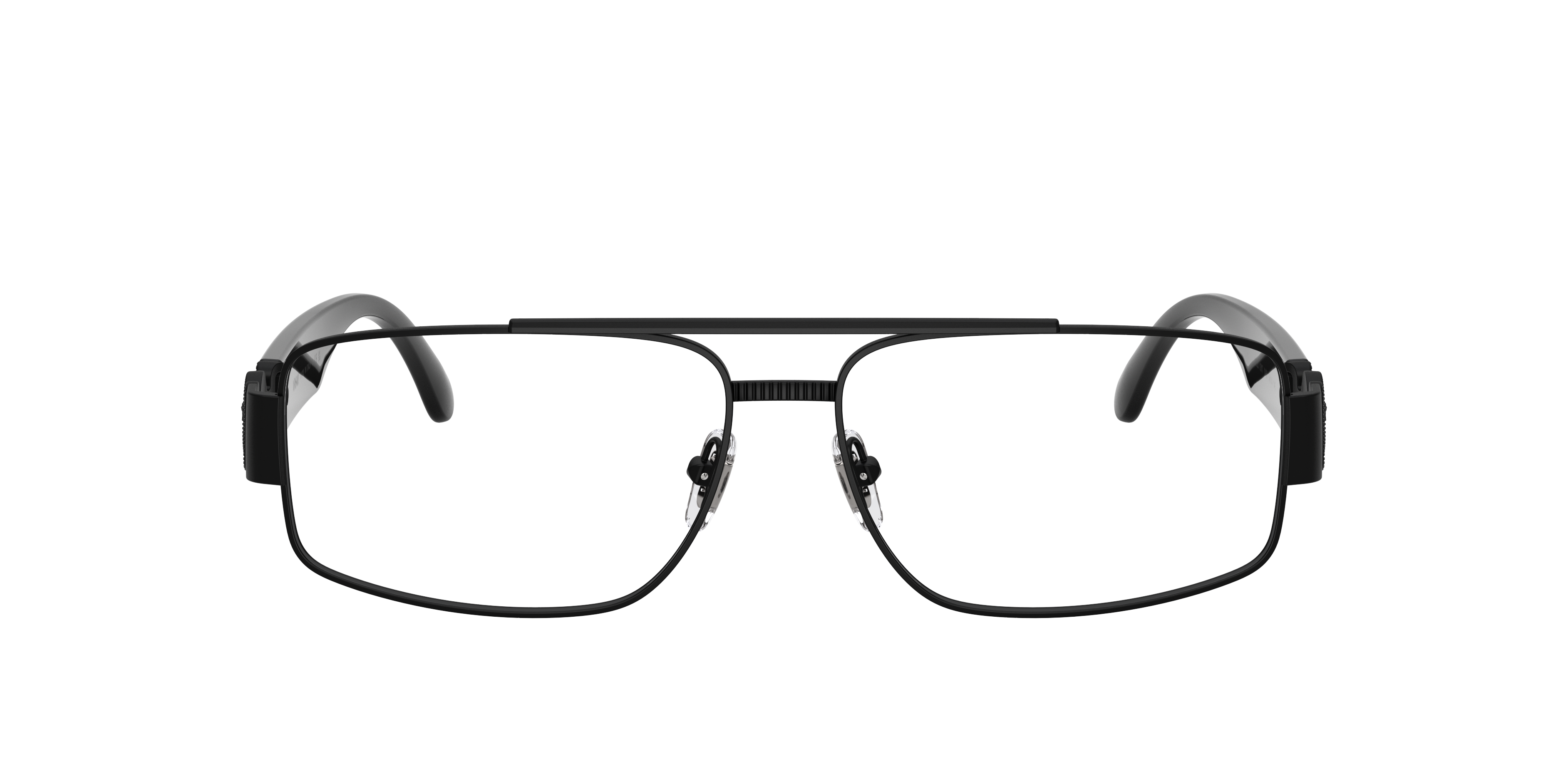 Inspired by the Medusa Biggie, the Versace VE1317 optical glasses bring an understated elegance to an iconic design. These full-rim rectangular Versace eyeglasses in sleek black metal offer lightweight comfort and clean definition. Adjustable nosepads ensure a tailored fit, while original temple details in refined proportions add a subtle nod to '90s hip-hop opulence.