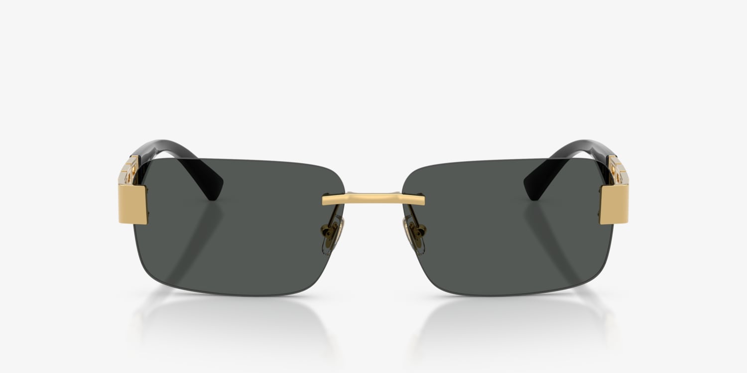 Embrace the harmonious fusion of style and functionality with Versace VE2298 rectangle-shaped sunglasses. These glasses feature a polished gold metal frame that exudes elegance and sophistication, enhancing the classic rectangle shape. The dark grey lenses, treated with a solid color coating for durability, provide optimal protection against the sun's glare. With their timeless design and impeccable craftsmanship, these eyewear are a must-have accessory for any fashion-forward individual.