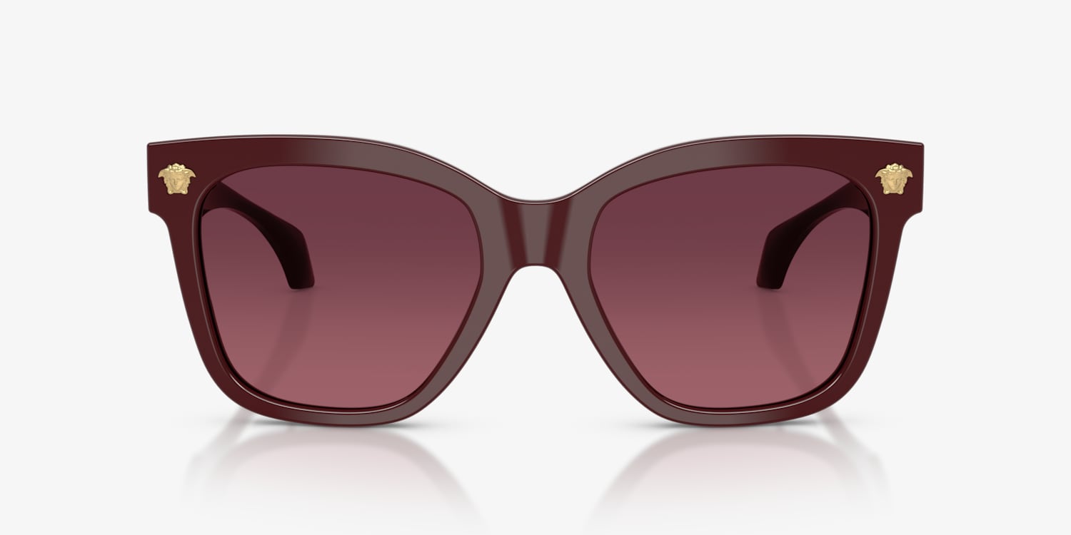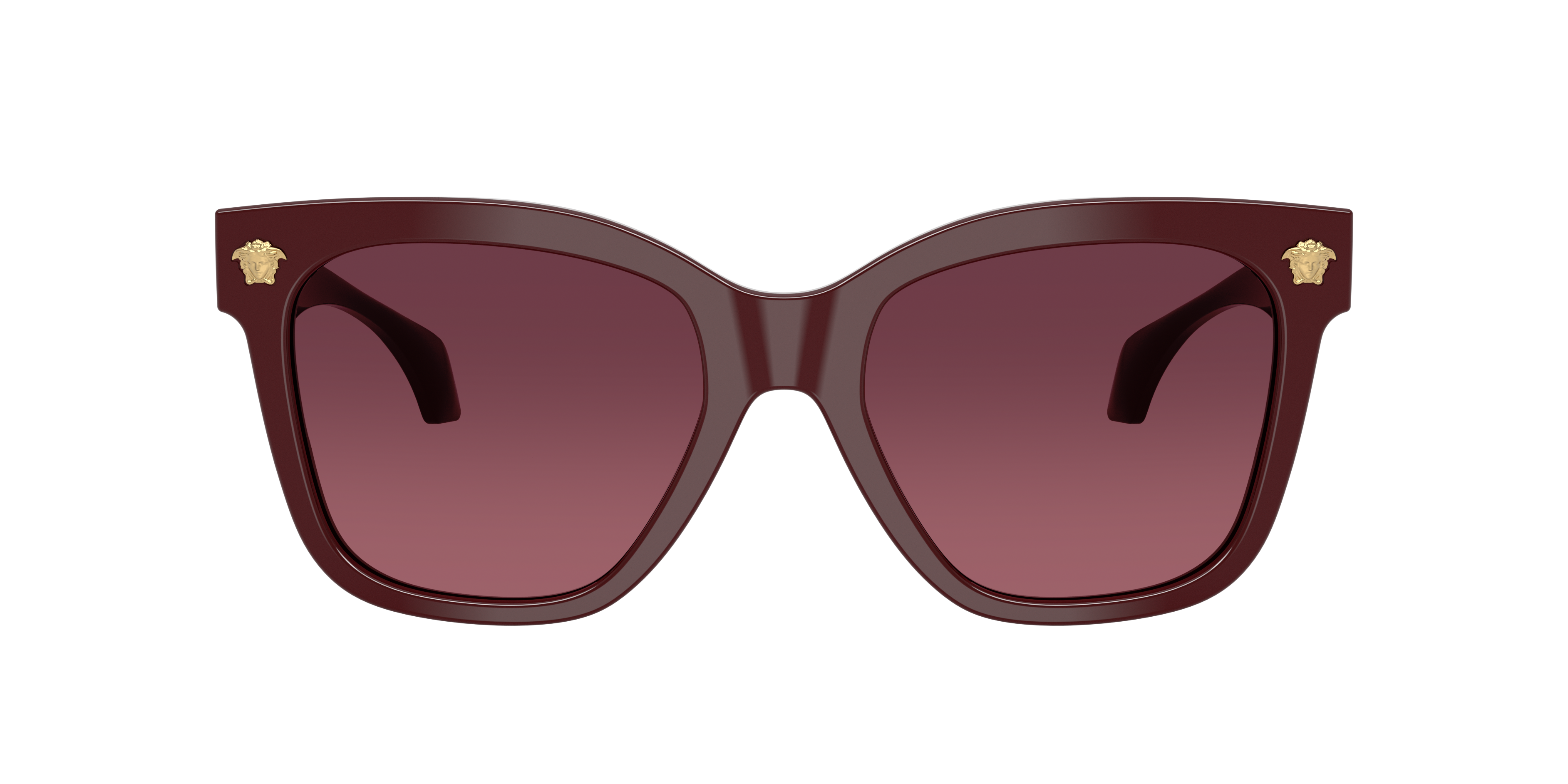 Signature Versace glamour comes to life in the VE4511 gradient sunglasses. These bold square frames, crafted from plastic, feature oversized dimensions and striking red/burgundy hues. The violet gradient lenses offer a contemporary touch, while the acetate temples showcase iconic Medusa embellishments for a luxurious finish.