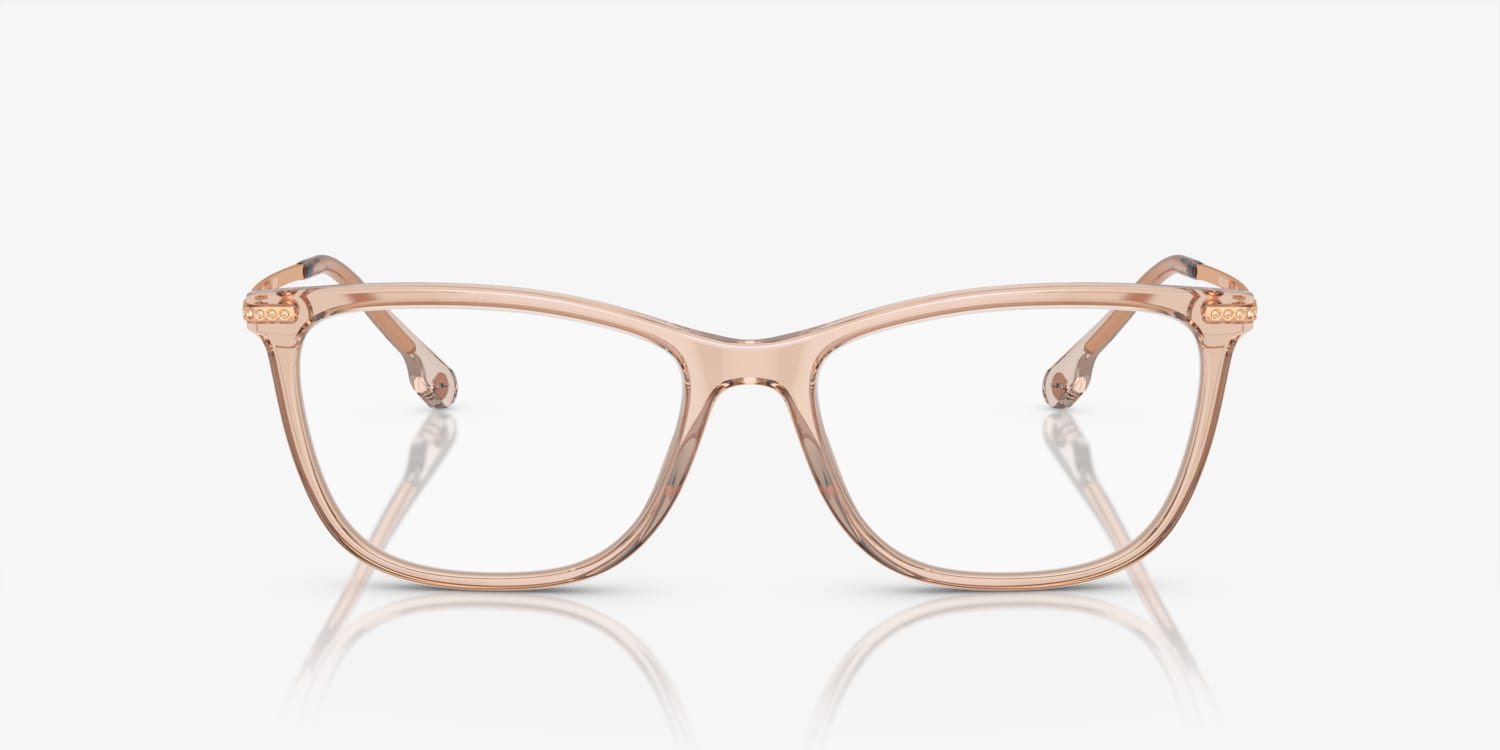 Discover the impeccable synergy of style and comfort in Versace VE3274B eyeglasses. The polished transparent brown acetate frame, with its unique pillow shape, is accented by strass on the temples for added sparkle. These eyeglasses feature a saddle bridge for a comfortable fit and are designed to be durable and long-lasting. Embrace your unique style while enhancing your vision with these luxurious glasses from Versace.