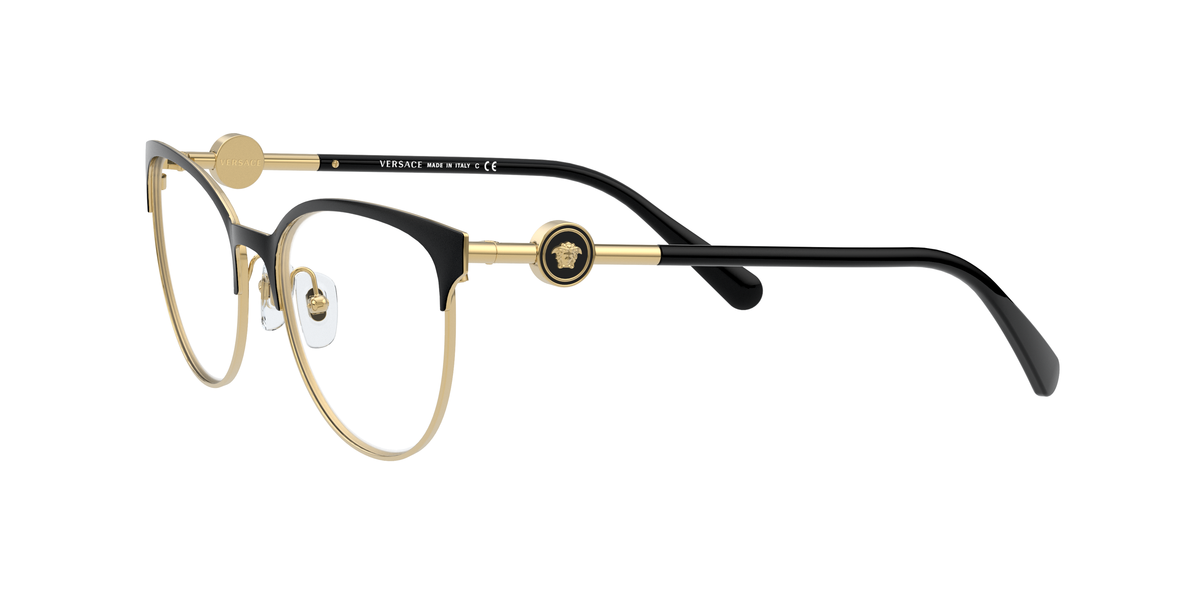Discover the impeccable synergy of style and optical functionality in Versace VE1271 eyeglasses. The polished black/gold metal frame, with its distinctive cat eye shape, exudes a timeless elegance that is hard to resist. These glasses are not just a fashion statement, but also a practical accessory for everyday wear.
